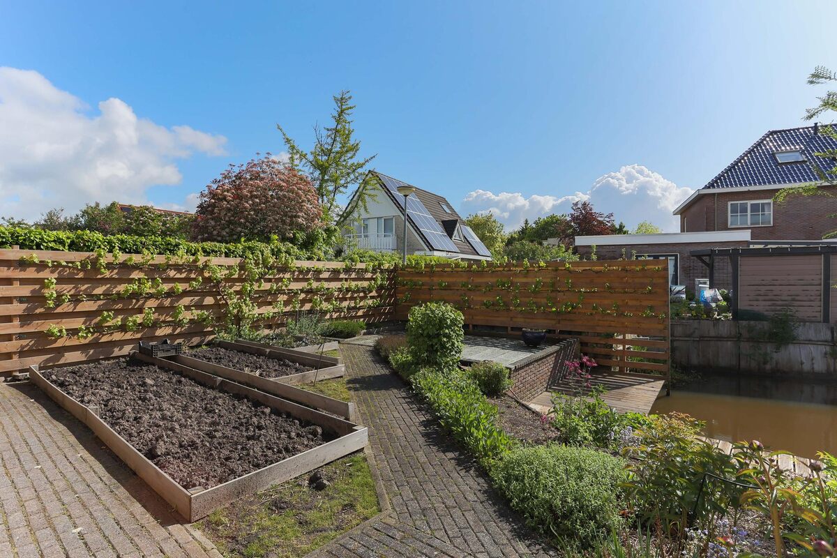 De tuin is heerlijk zonnig en fraai aangelegd. Een plaatje om te zien. Ook met grote steiger, borders (veel heideplanten) en lekkere terrassen. Perceeloppervlak ca. 480 m2. Veel water!