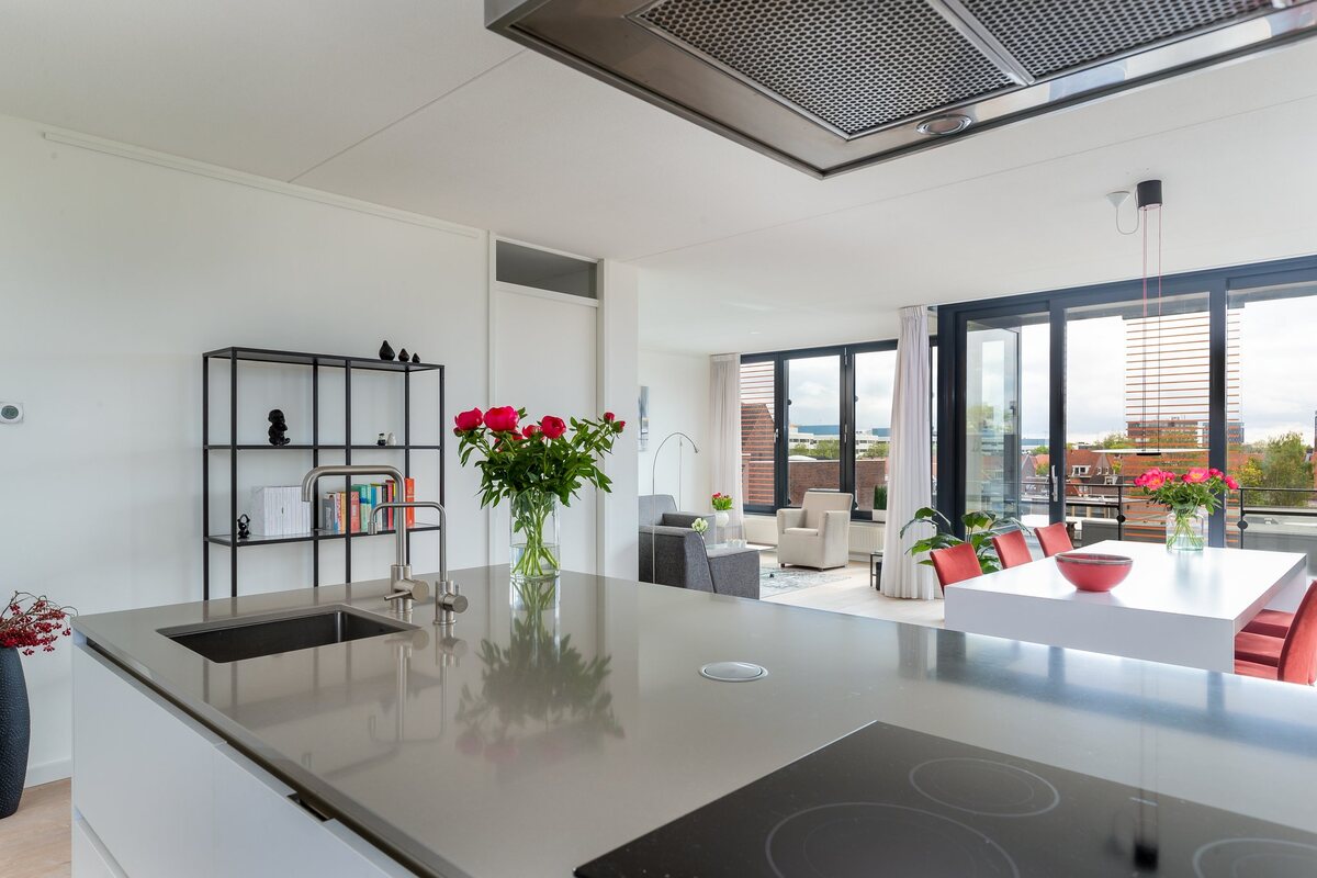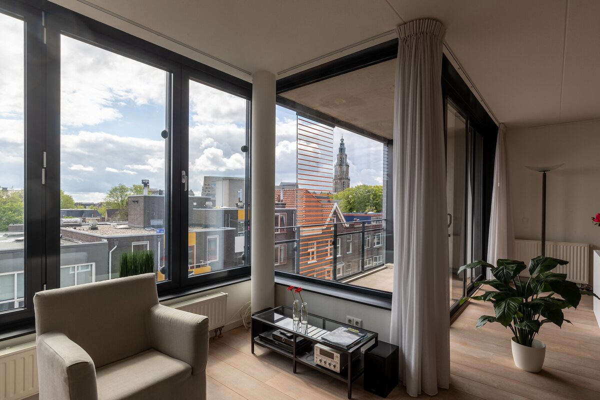 KORTRoyaal, bijzonder licht en luxe appartement (116 m2) gelegen op de vierde verdieping in appartementencomplex "De Gerner". Het huis heeft een eigen parkeerplaats in de parkeergarage en is gelegen in het centrum van de stad op enkele minuten lopen van de Grote Markt en het UMCG. Een heerlijk modern strak appartement in perfecte conditie!