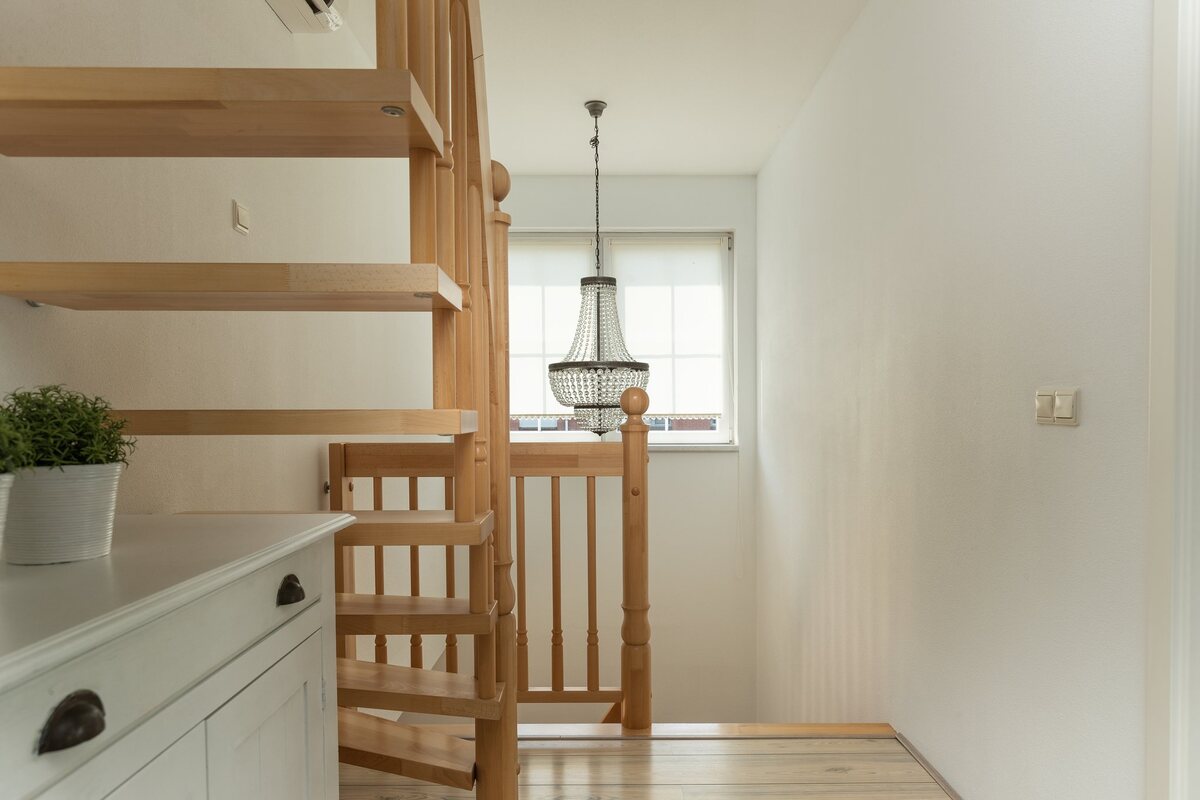 Begane grond: entree, royale hal (13 m2), trapopgang, meterkast, toilet, ruime living (ca. 54 m2) met half open woonkeuken (20 m2) een zitkamer van ca. 33 m2. Via deze kamer toegang tot de serre (2015) van 16 m2. Hier is het heerlijk zitten! Verder een forse bijkeuken.Eerste verdieping: overloop, 4 fijne slaapkamers (14, 14, 11 en 9 m2) en een keurige badkamer (8 m2) voorzien van een douche, tweede toilet, dubbele wastafel en hoekbad. Tweede verdieping: via een vaste trap te bereiken grote overloop met opbergmogelijkheden en een vijfde slaapkamer (7 m2).
