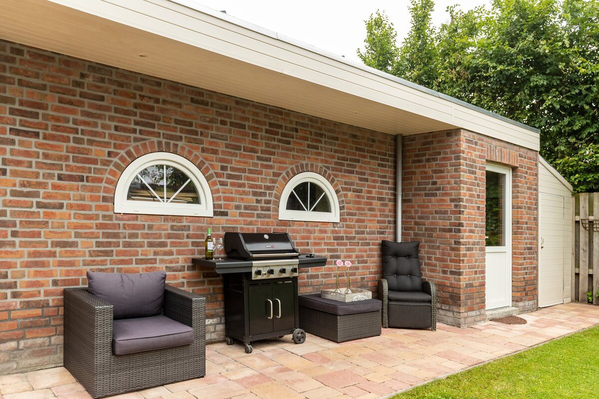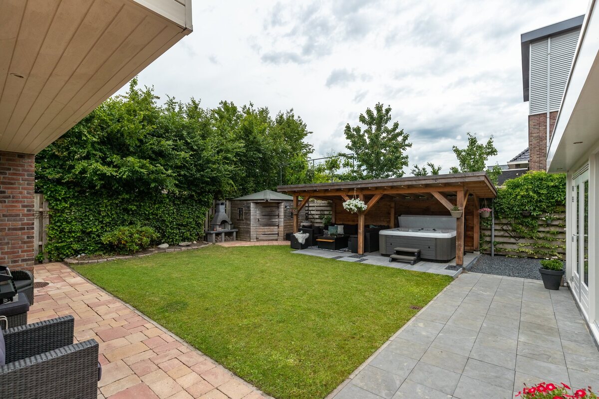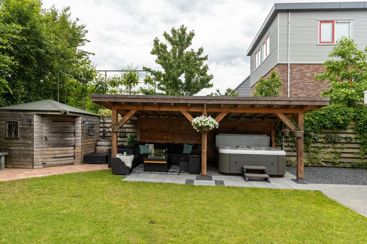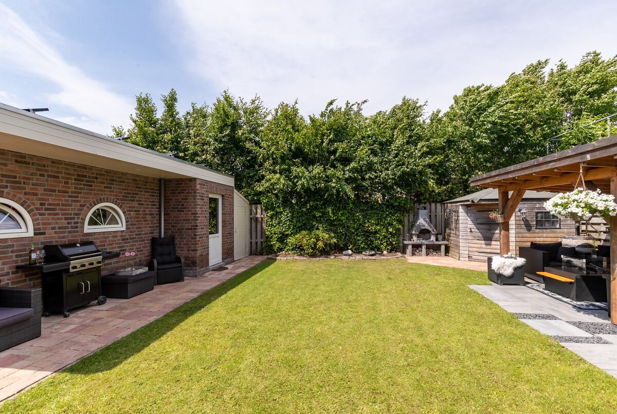 Tuin rondom, verzorgd. Grote oprit en lekkere besloten achtertuin met fraaie overkapping, garage en schuurtje. De ruimtes zijn goed benut!