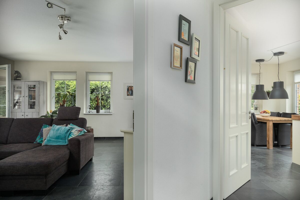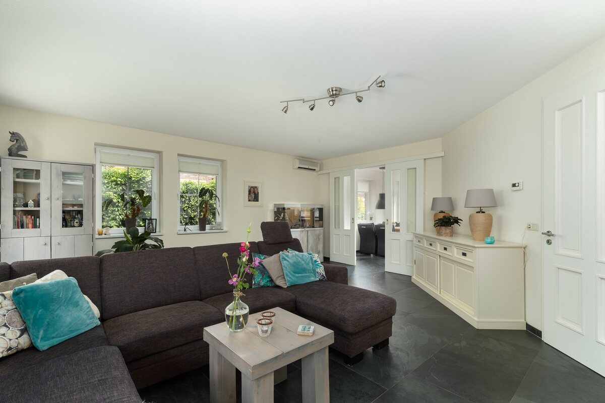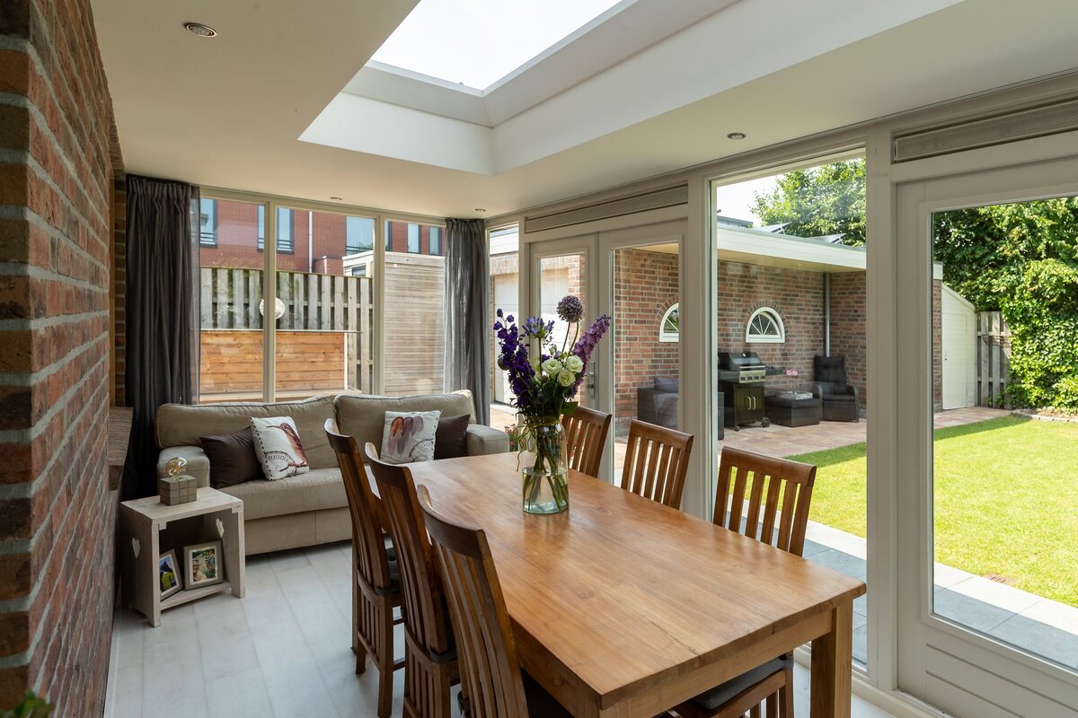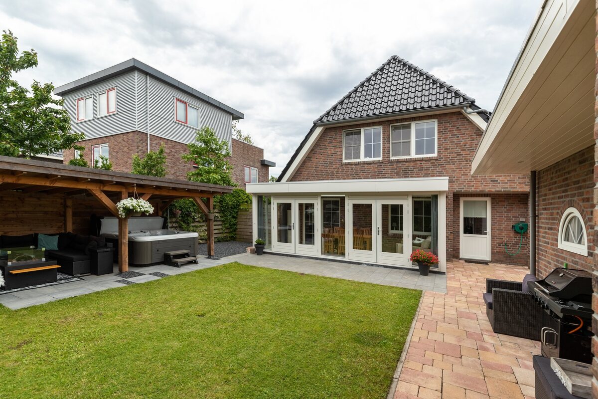 Tuin rondom, verzorgd. Grote oprit en lekkere besloten achtertuin met fraaie overkapping, garage en schuurtje. De ruimtes zijn goed benut!