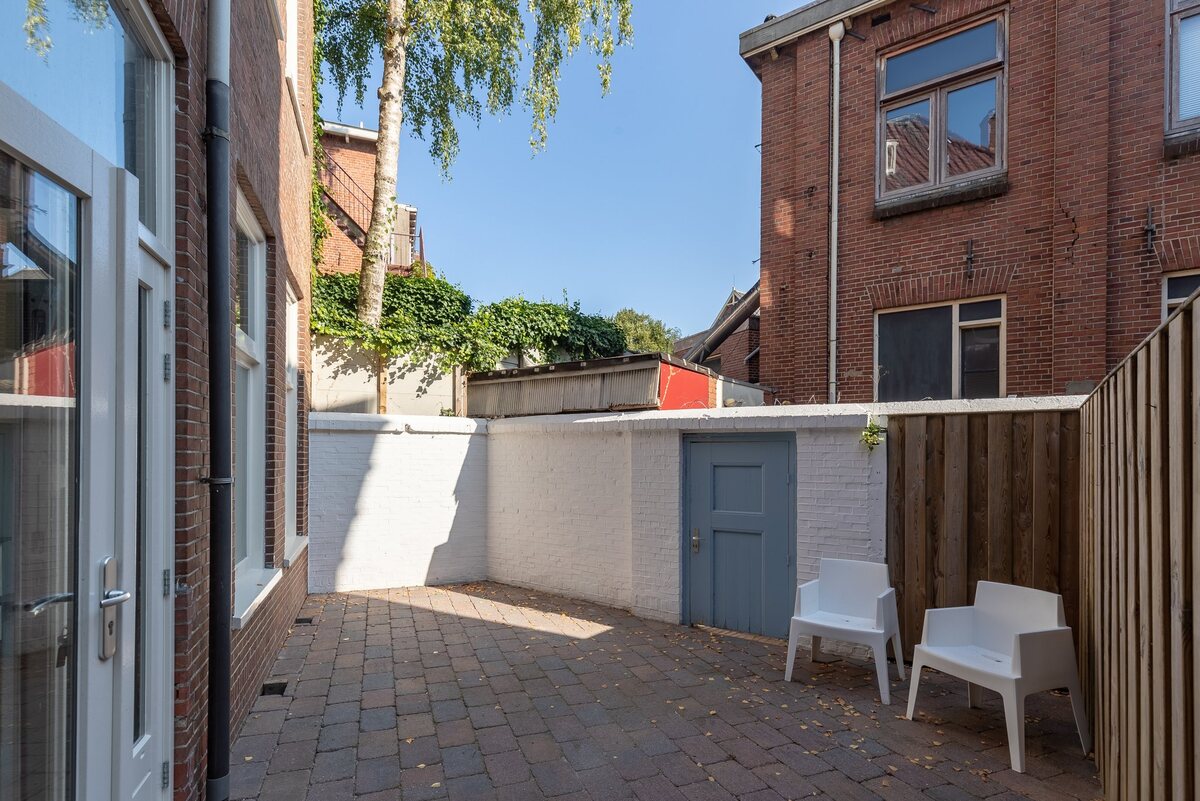 Aan de achterzijde van de woning bevindt zich een kleine plaats (ca. 22 m2) met achterom. 's Zomers enig zon.