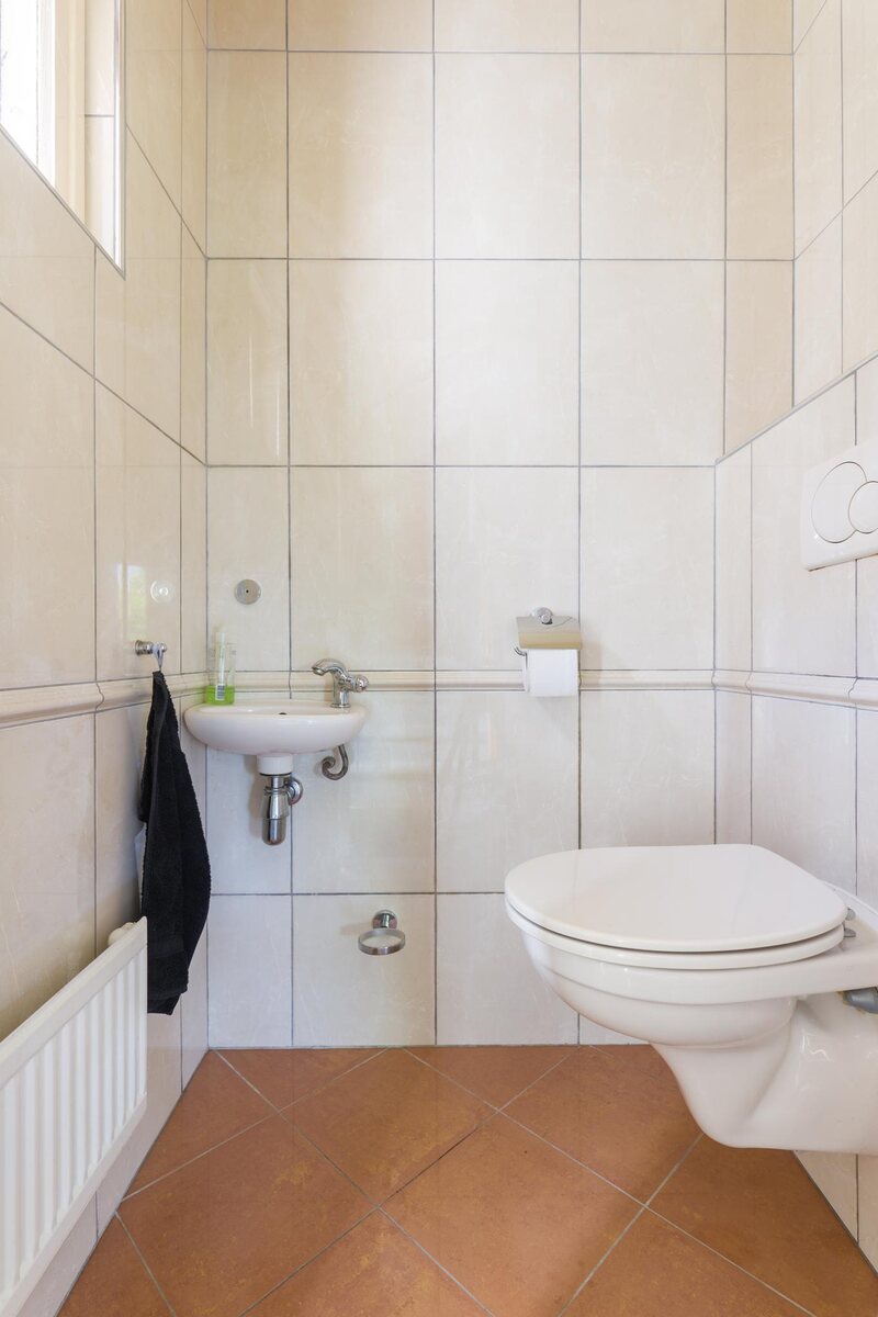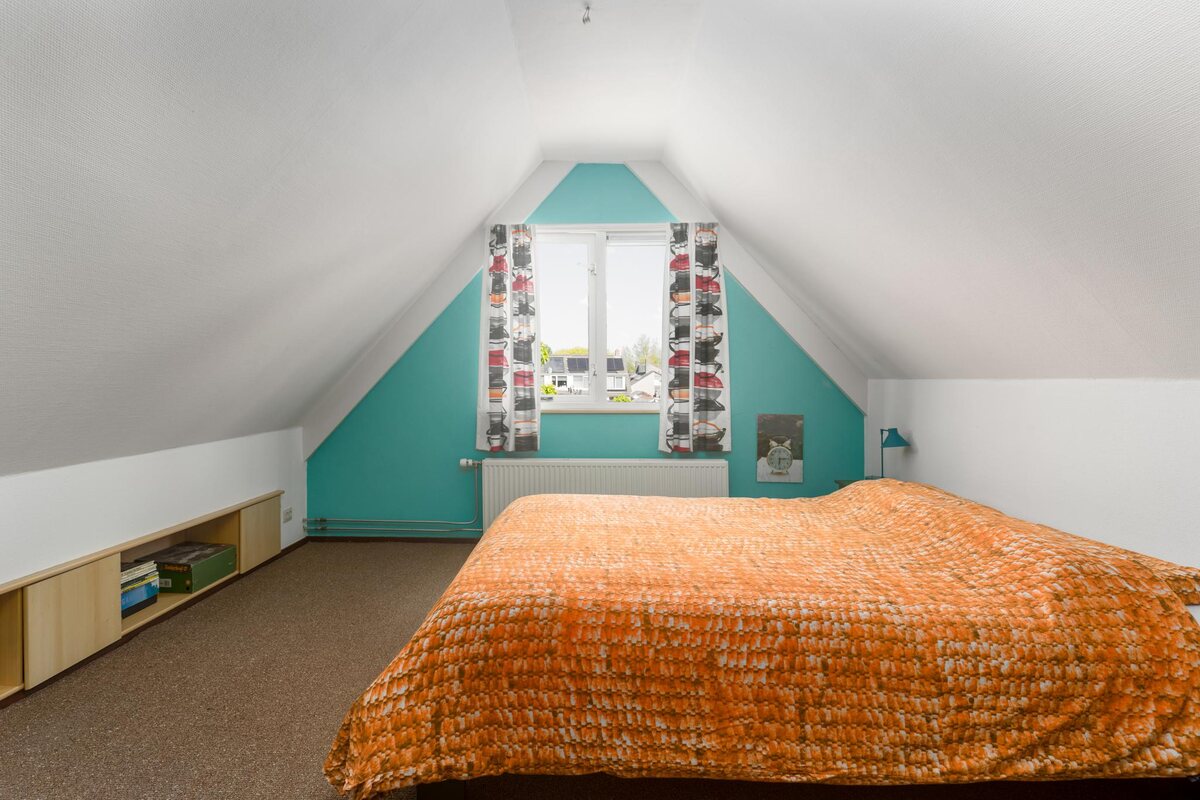 1e verdieping: Overloop met wandkast, vlizoluik en toegang tot vier slaapkamers en de badkamer. Twee slaapkamers aan de voorzijde van ca. 13 en 10 m2. Nette en moderne badkamer (ca. 5m2) met ruime inloopdouche, tweede toilet en vaste wastafel. Veel lichtinval door de dakkapel. Twee slaapkamers aan de achterzijde van ca. 15 en 7 m2. Vliering met bergruimte en de Cv-ketel.