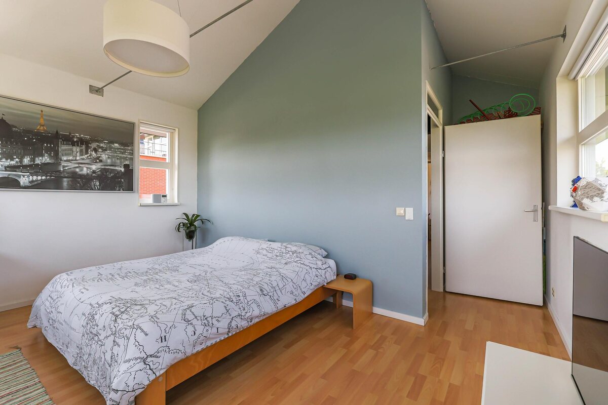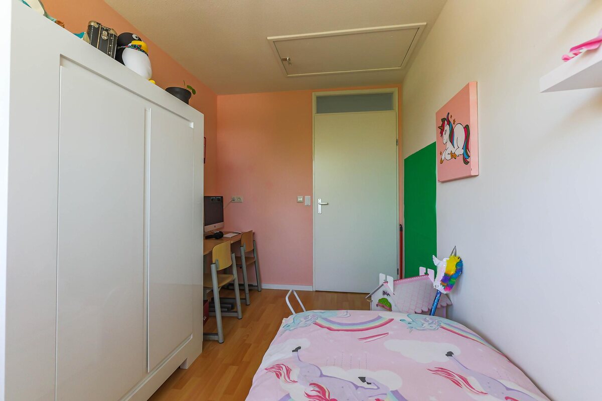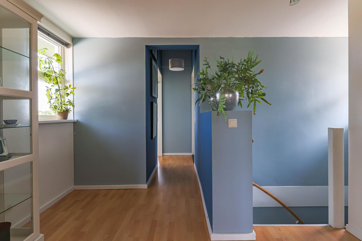 Eerste verdieping: overloop met toegang tot drie slaapkamers en een badkamer. De grootste slaapkamer bevindt zich aan de achterzijde en is ca. 18 m² groot. De overige twee slaapkamers zijn beide ca. 9 m² groot. De badkamer is voorzien van een toilet, een inloopdouche en een dubbele wastafel. Het geheel is ca. 6 m² groot. Ook is er nog een afzonderlijk ruimte voor de wasmachine en de cv-opstelling. Via een slaapkamer is het nog mogelijk om met een vlizotrap de bergzolder te bereiken.