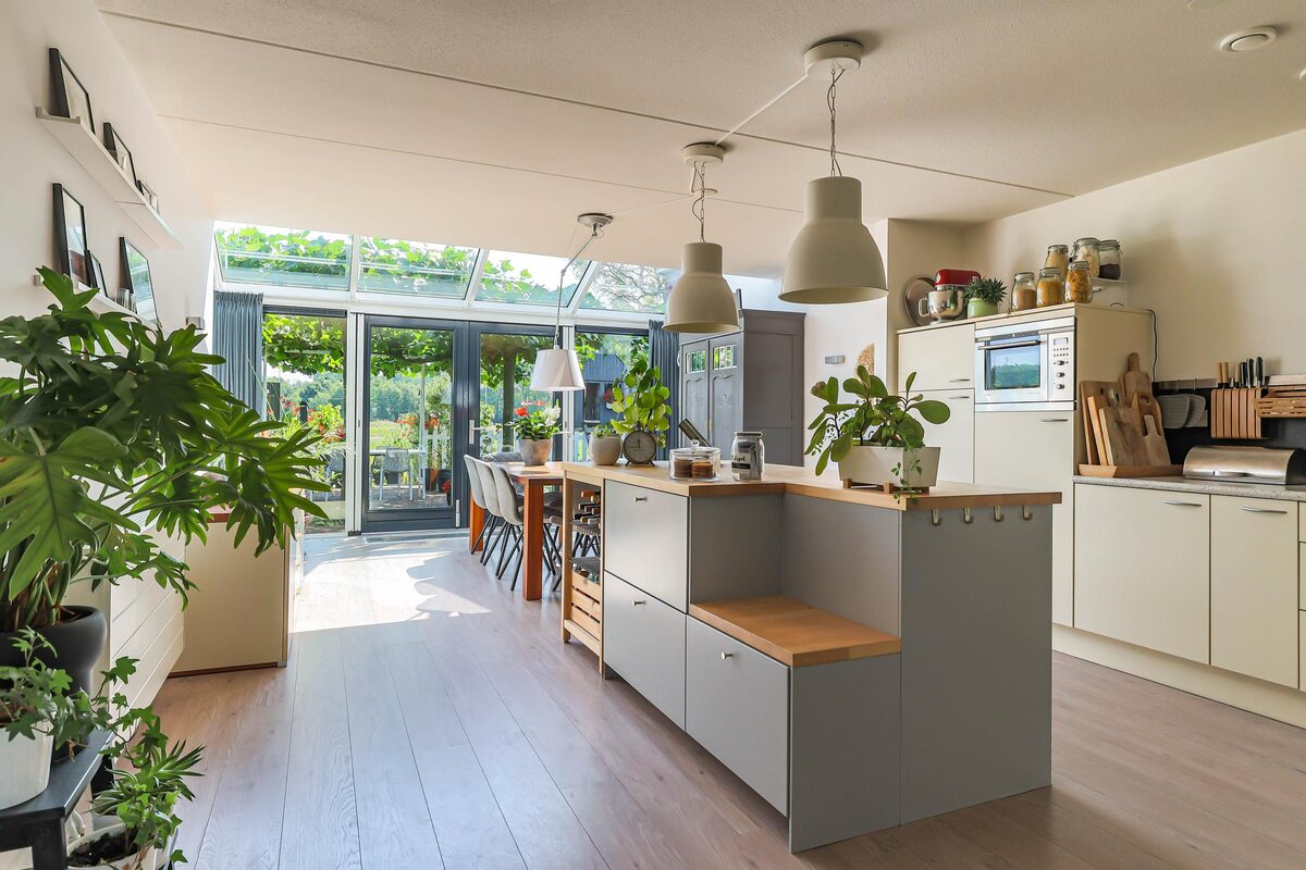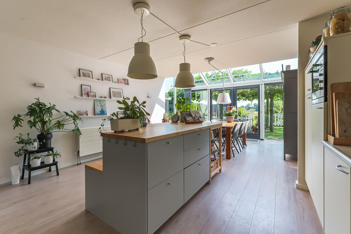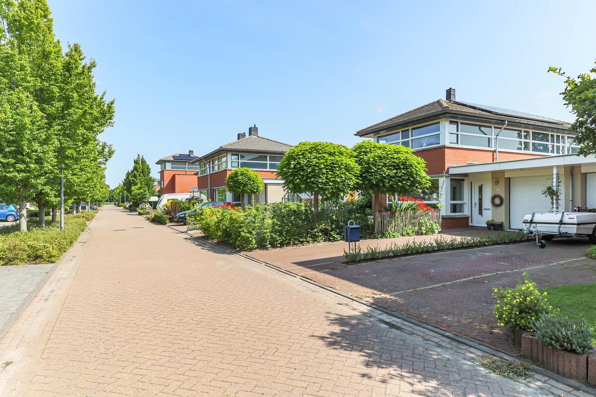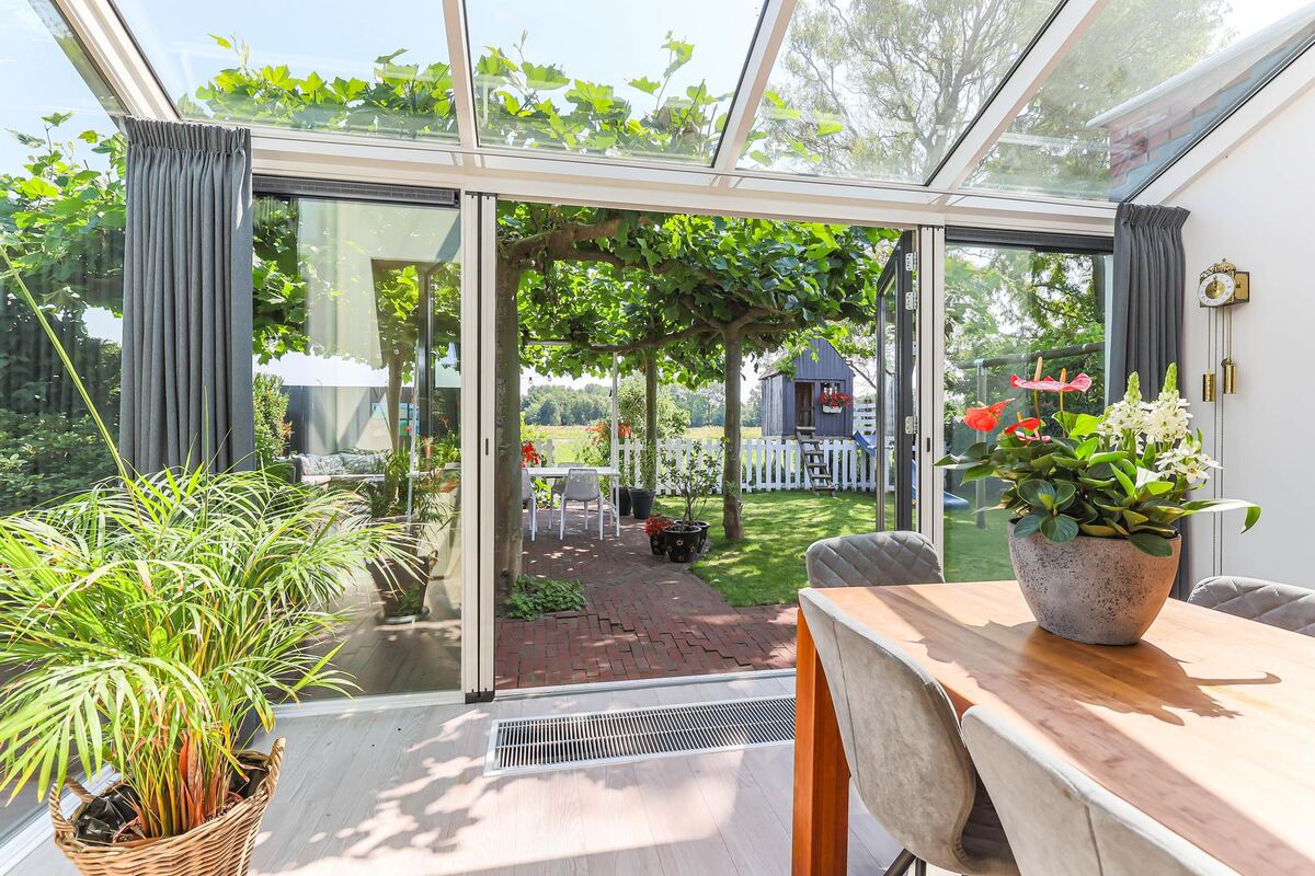 Begane grond: entree/tochtportaal met meterkast. Vanuit de hal is er toegang tot de inpandige garage, een afzonderlijk toilet, badkamer, slaapkamer, woonkamer en keuken. De woonkamer met open keuken is in totaal ca. 62 m² groot. De lichte woon-/eetkeuken beschikt over een grote glazen pui aan de achterzijde met openslaande deuren naar de tuin. De keuken is voorzien van diverse inbouwapparatuur. De slaapkamer op de begane grond is ca. 16 m² groot en biedt ook toegang tot de achtertuin. De badkamer is ca. 7 m² groot en is voorzien van een ligbad, een douche en een dubbele wastafel. De garage is ca. 18 m² groot. Er is een ruime berging aangebouwd.