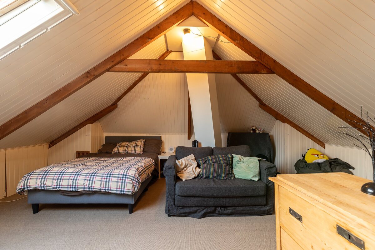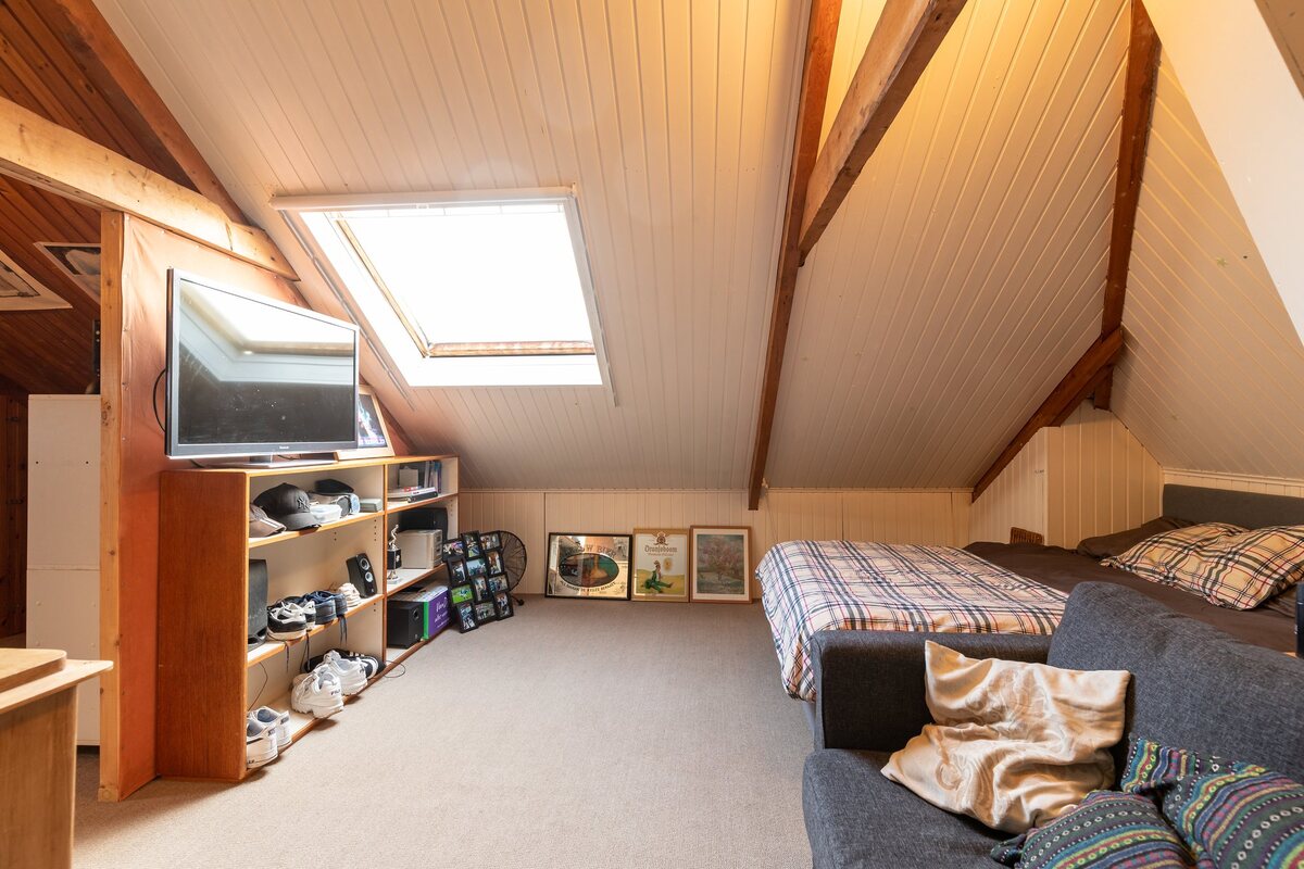 Via een vaste trap naar de royale zolderverdieping (ca. 30m2 op 1,5 meter hoog gemeten) waar extra (slaap-) kamers mogelijk zijn.
