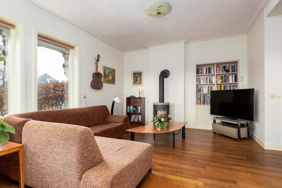Bijzonderheden: - de garage+berging volledig in spouw aangebouwd in 1985- in 2001 is de complete CV-installatie vervangen, met een HR ketel uit 2013 (boven de keuken) en dakisolatie.- in 2007 is het rookkanaal in de woonkamer geschikt gemaakt voor het gebruik van een houtkachel. In 2014 is ook een rookgasafvoer in de keuken aangelegd. - aan tuinzijde mooie markiezen aanwezig.