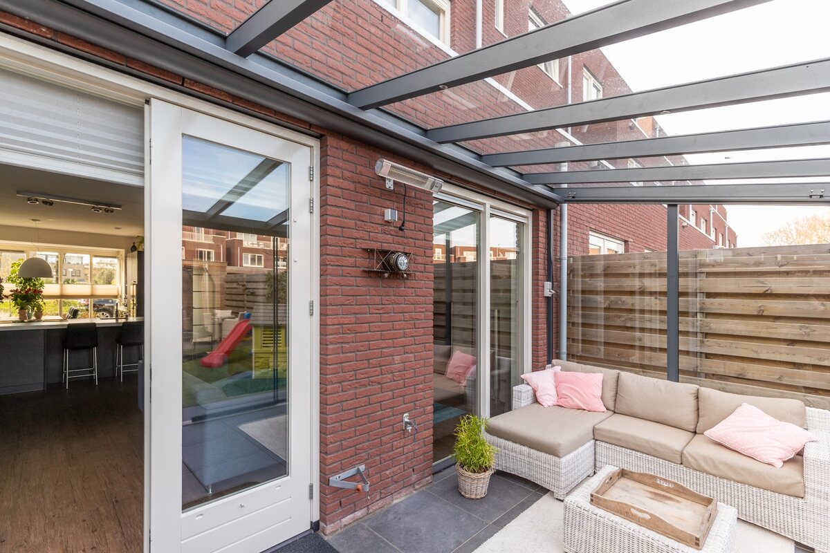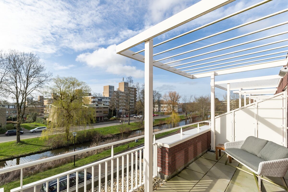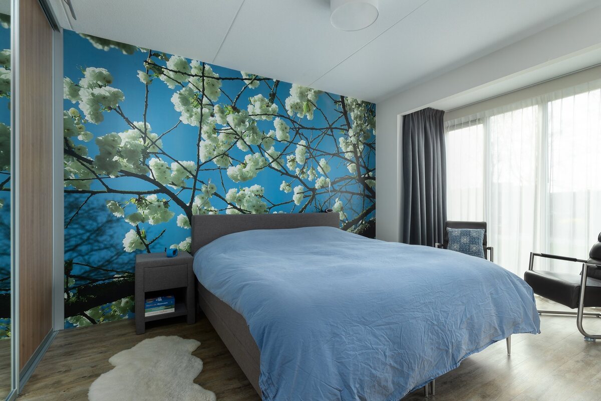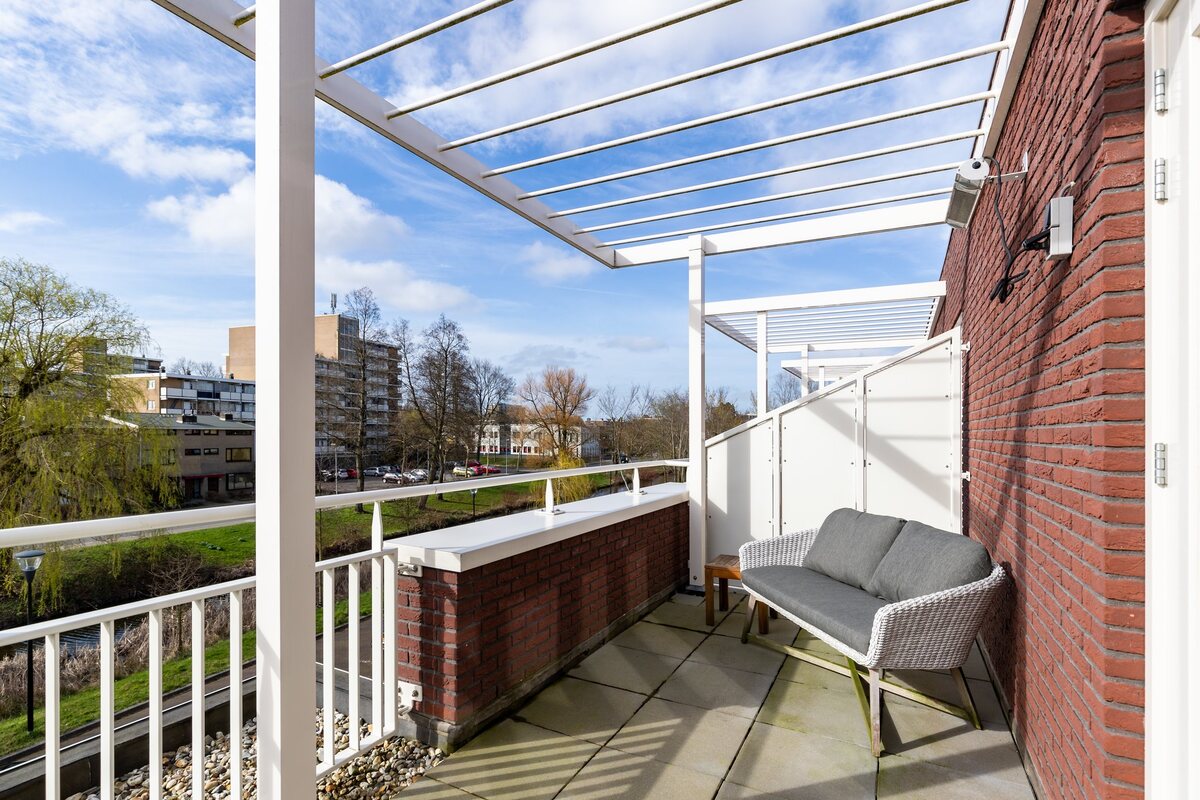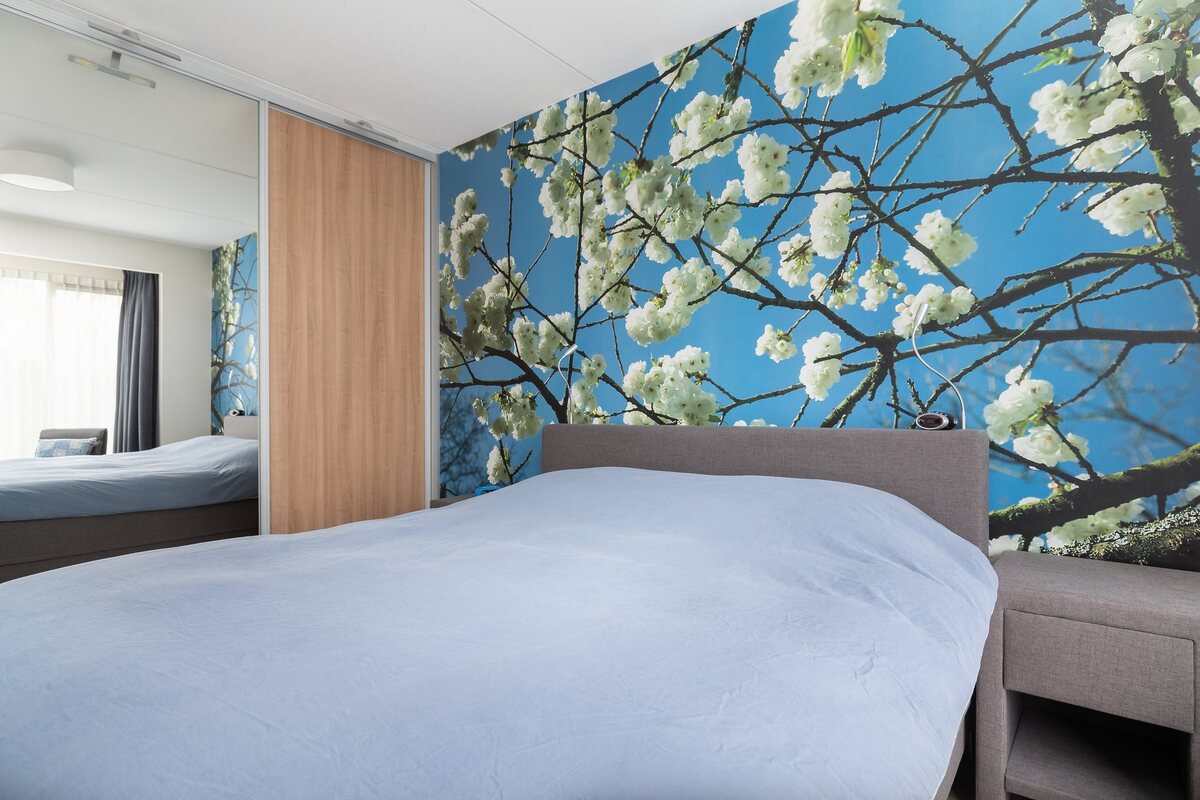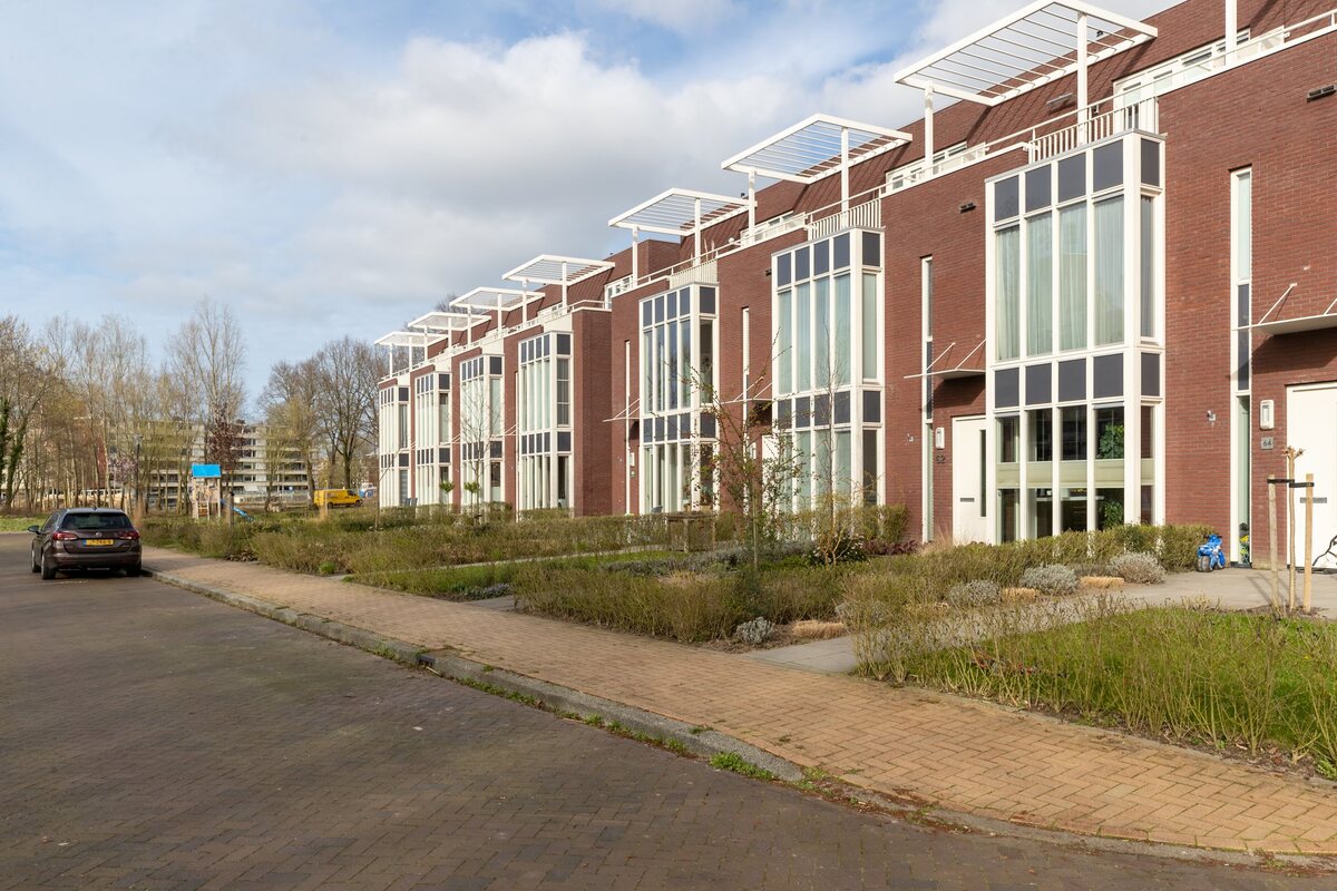 Begane grond: Entree met hal, trapopgang en toilet. Royale living van ca. 54 m² met pvc vloer en openslaande deuren naar de serre en achtertuin. De luxe keuken is deels als schiereiland met bar centraal in de living geplaatst (v.v. inductie kookplaat, spoelbak en vriezer) en een deel aan de wand aan de voorzijde (v.v. koelkast, vaatwasser, stoomoven, oven en wijnkoelkast). Een ruime trapkast biedt voldoende opbergmogelijkheden. Aan de voorzijde geeft de glazen erker veel licht en een prachtig vrij uitzicht.