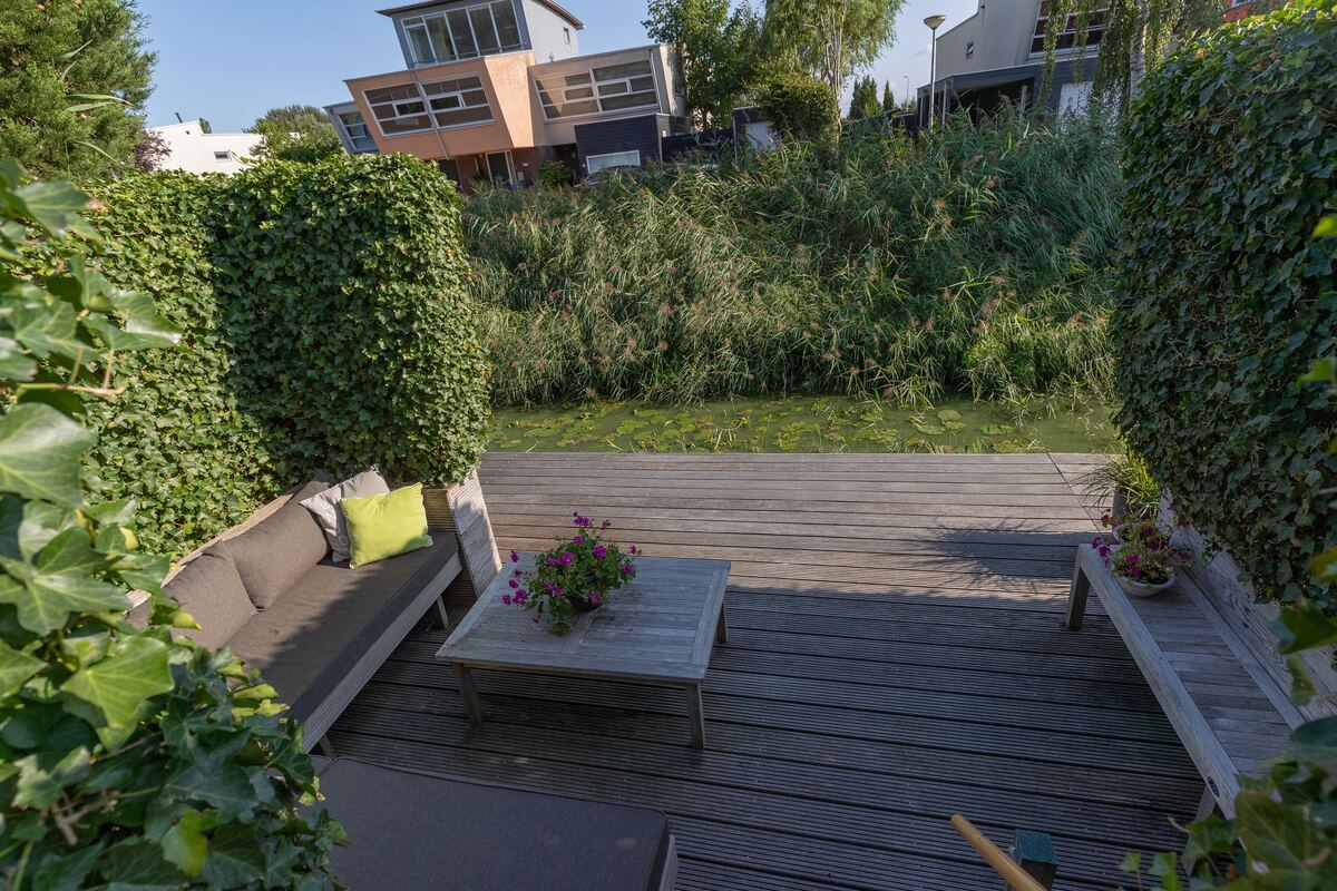 - riante vlonder aan het water met vaste loungehoek- garage verbouwd (en verlengd) tot woonruimte;