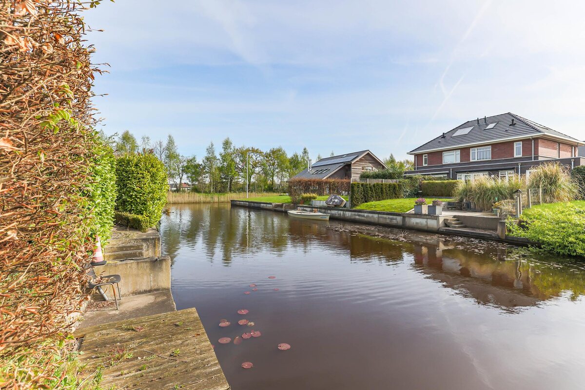 - Ligging: Aan rustige weg, in woonwijk, aan vaarwater