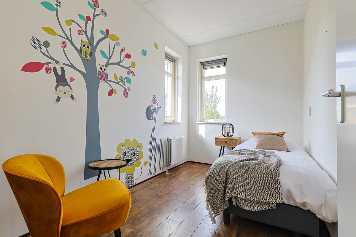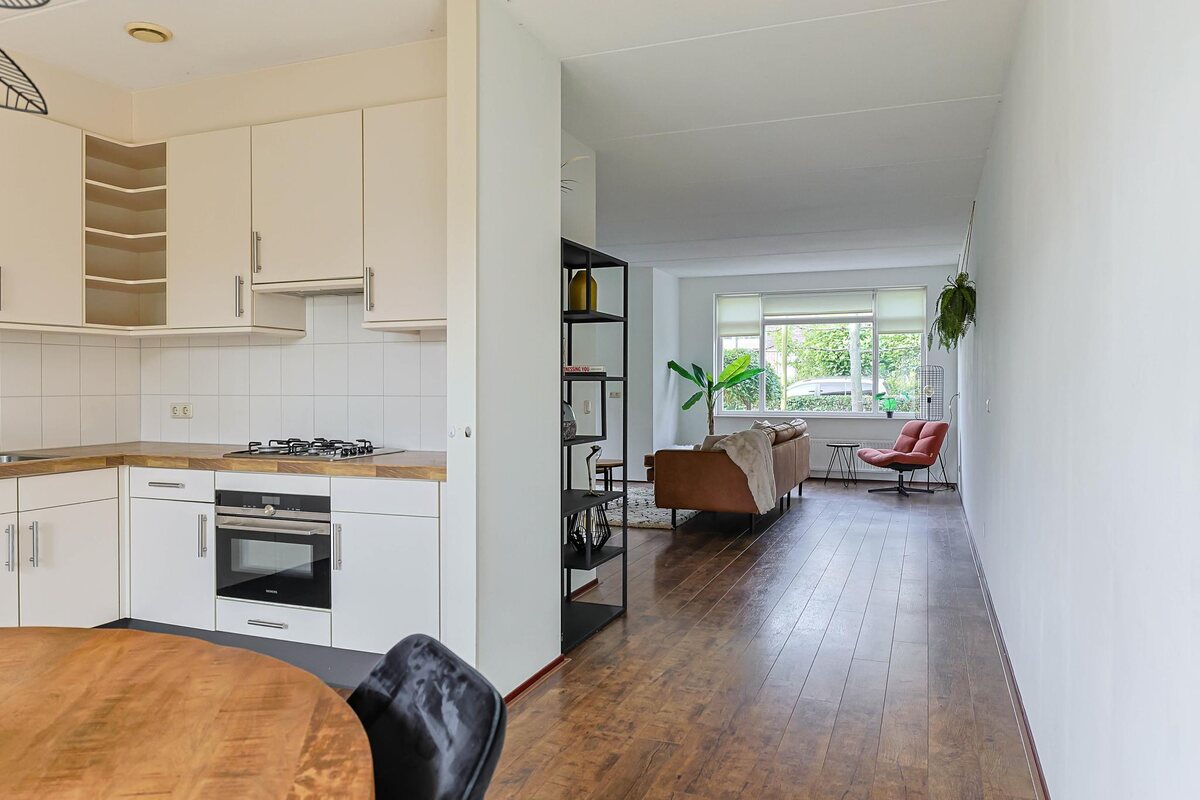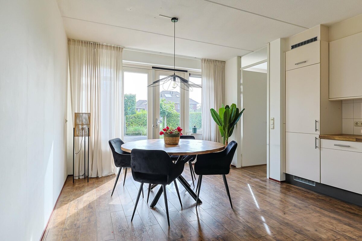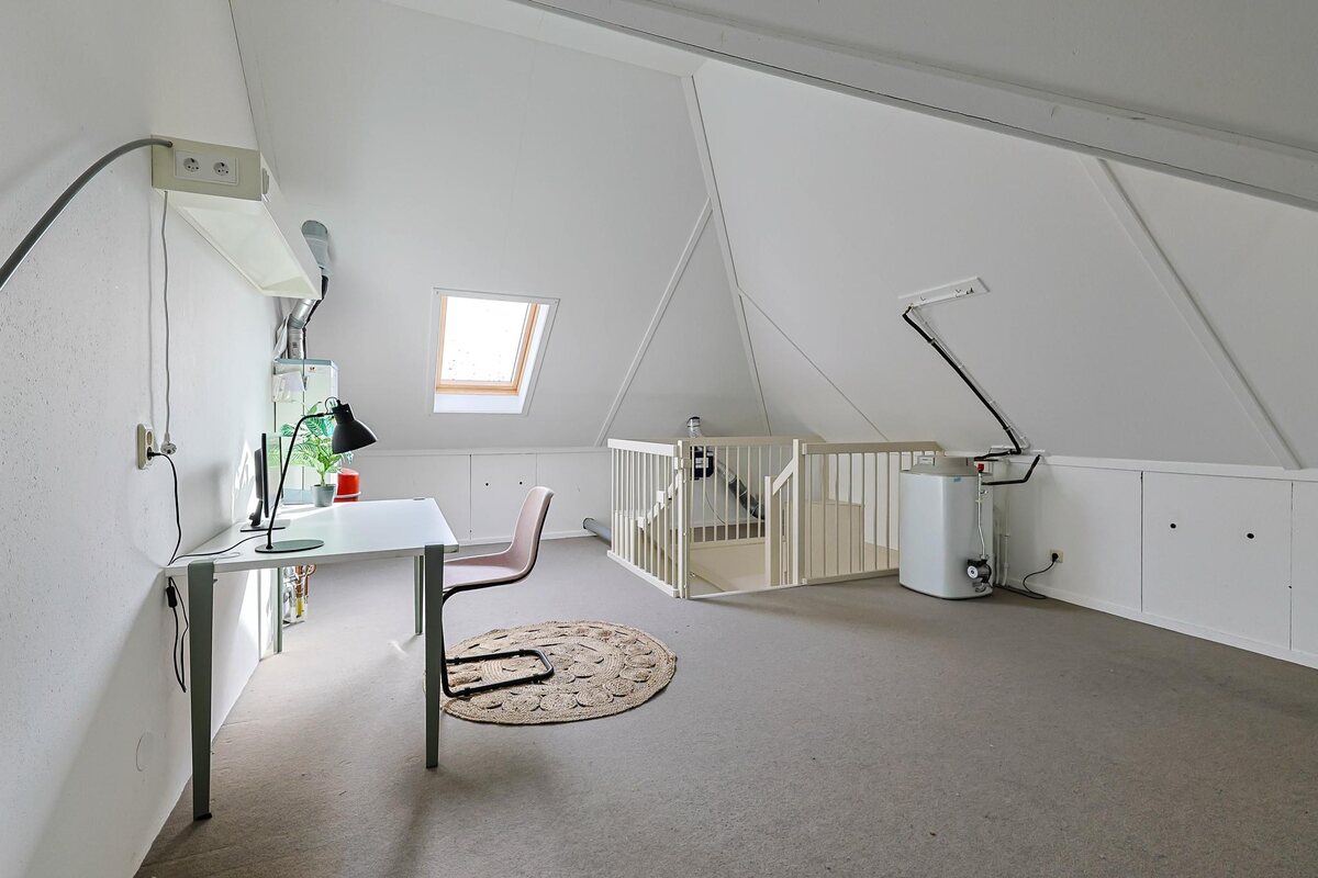 INDELING Begane grond: entree/hal met toilet, trapkast en trapopgang. Royale living van ca. 51 m2. De woonkamer ligt aan de voorzijde van de woning met zicht op de woonstraat vanuit de erker. Aan de achterzijde is de woning uitgebouwd en is er een ruime woonkeuken aanwezig. De inbouwkeuken is voorzien inbouwapparatuur. Vanuit de keuken is er middels openslaande deuren toegang tot de zonnige achtertuin. In de woonkeuken is een doorgang naar de bijkeuken (7 m2) die weer toegang geeft naar de garage (19 m2)Eerste verdieping: overloop, drie slaapkamers van ca. 17, 11 en 8 m2. Badkamer met ligbad, douche, wastafel en tweede toilet.Tweede verdieping: riante vierde slaapkamer van ca. 21 m2 (bruto vloeroppervlak zelfs 32 m2).