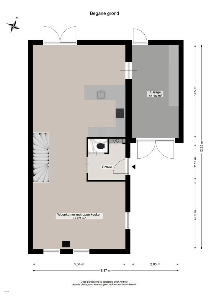 Begane grond: entree/hal met meterkast, trapopgang en modern toilet (2021). De lichte en verlengde U-vormige woonkamer (63 m2!) is v.v. dubbele openslaande tuindeuren. De open keuken (2011) is v.v. een U-vormig keukenblok v.v. inbouwapparatuur.