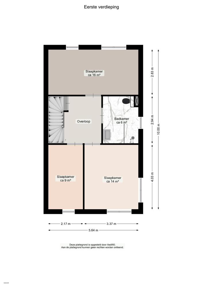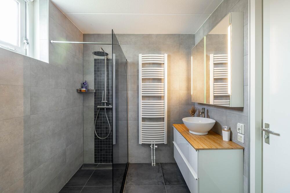 Eerste verdieping: overloop, drie slaapkamers resp. 16, 14 en 9 m2. De badkamer uit 2019 heeft een chique uitstraling, heeft daglicht en is 6 m2 groot.