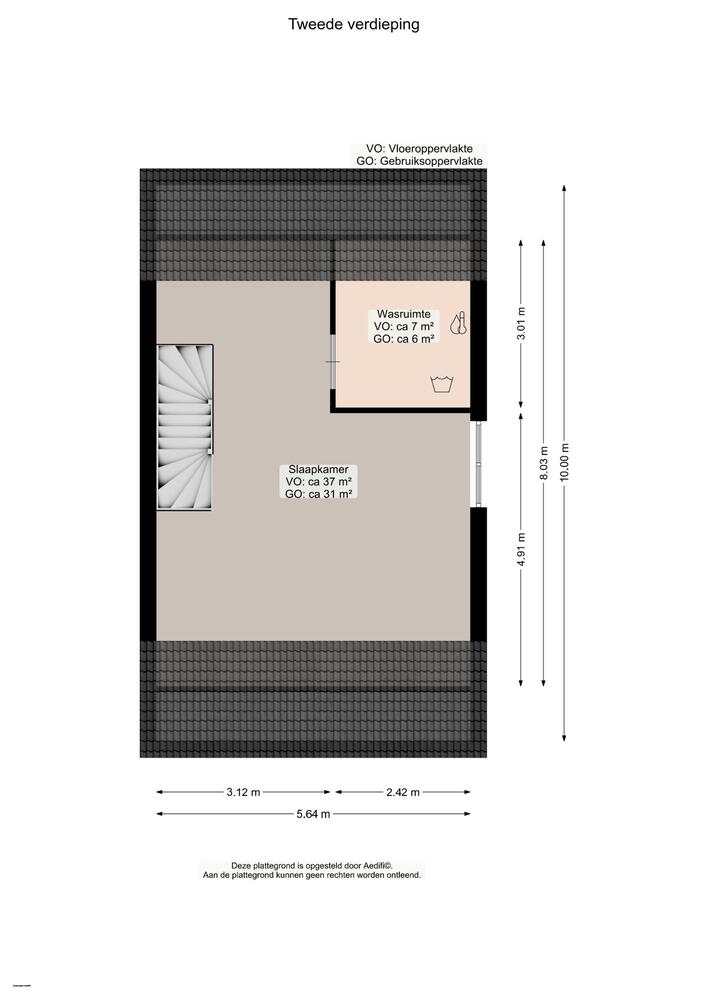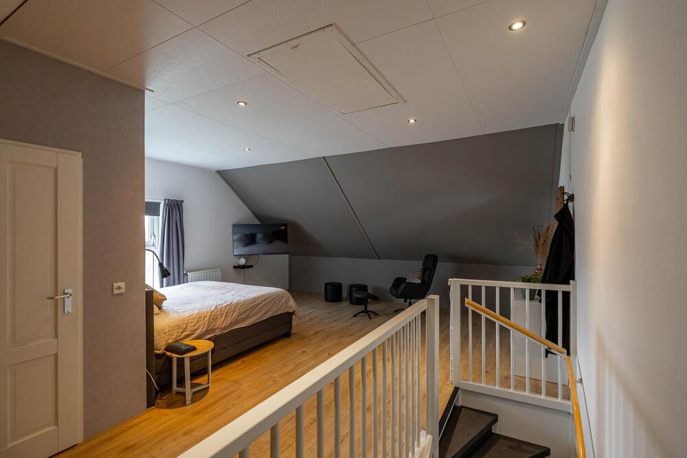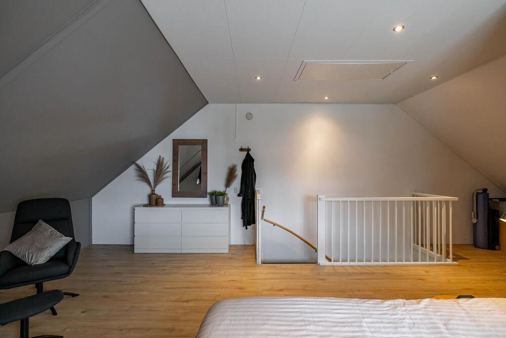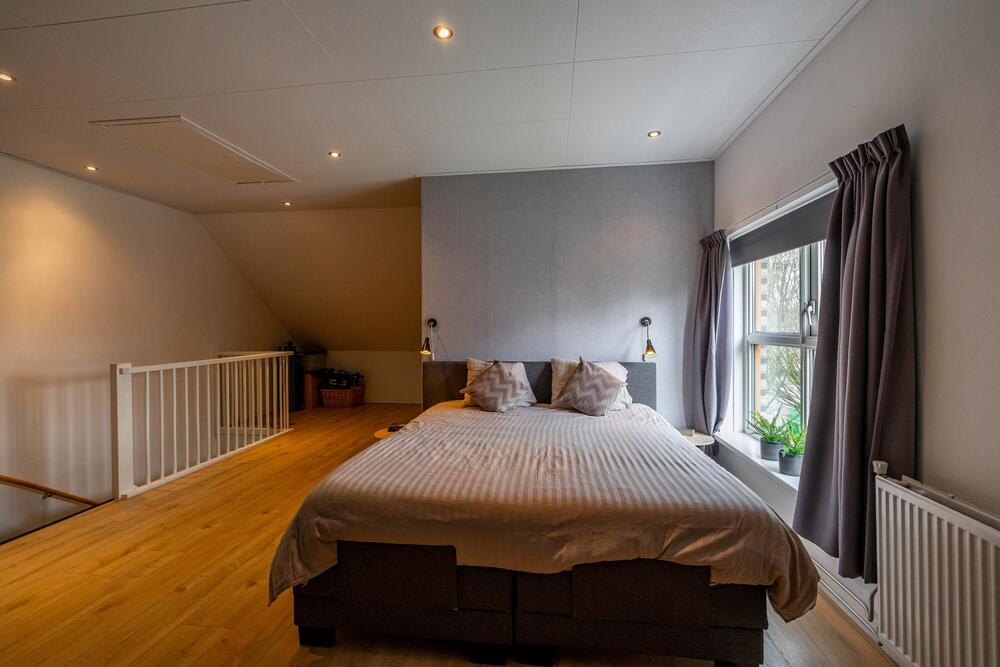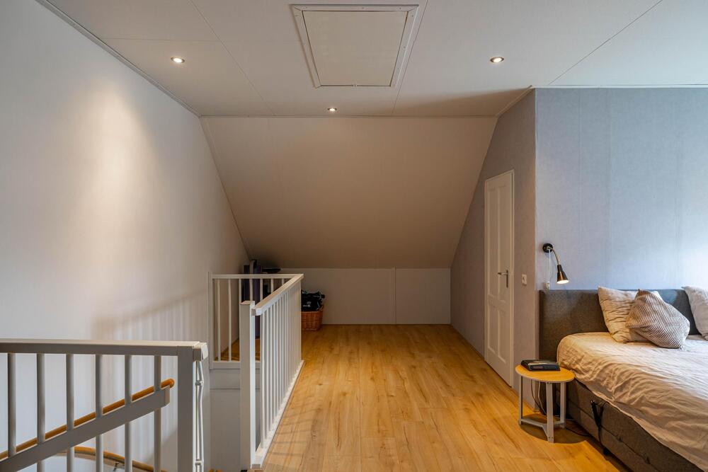 Tweede verdieping: zeer royale zolderruimte met grote vierde slaapkamer (31 m2) en met handig washok (6 m2).