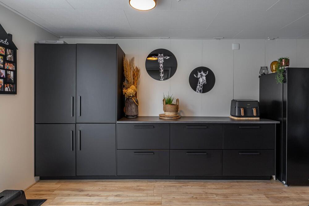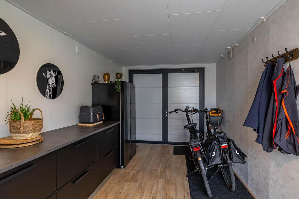 De garage is toegankelijk via de keuken en is omgetoverd tot een grote bijkeuken van 16 m2.