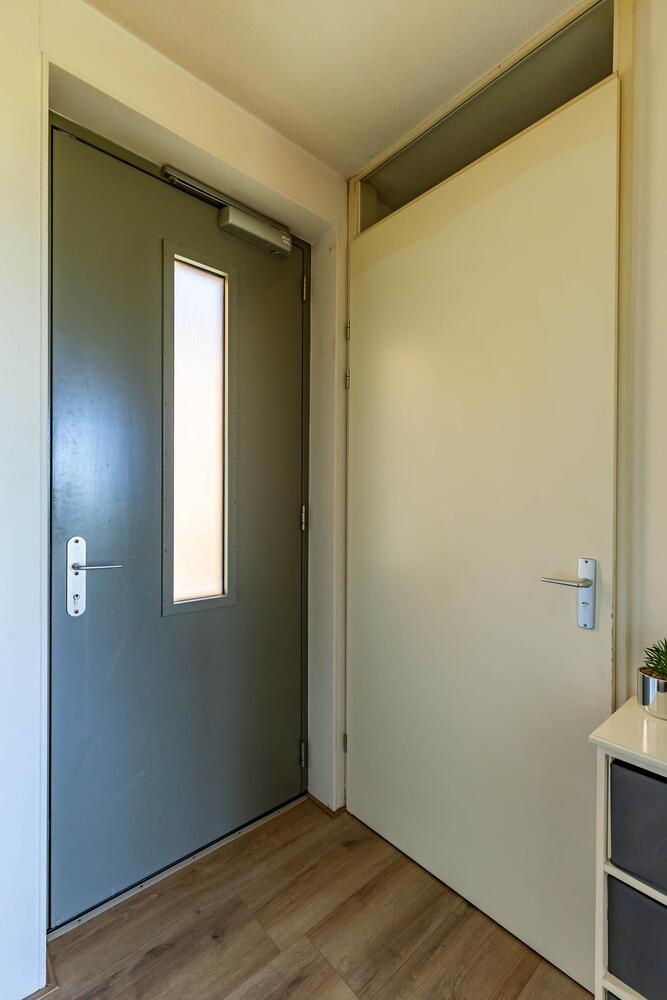 Entree in ruime hal (ca. 6 m2) met toegang tot alle vertrekken, toilet, meterkast en kast met de CV ketel en wasmachineaansluiting.
