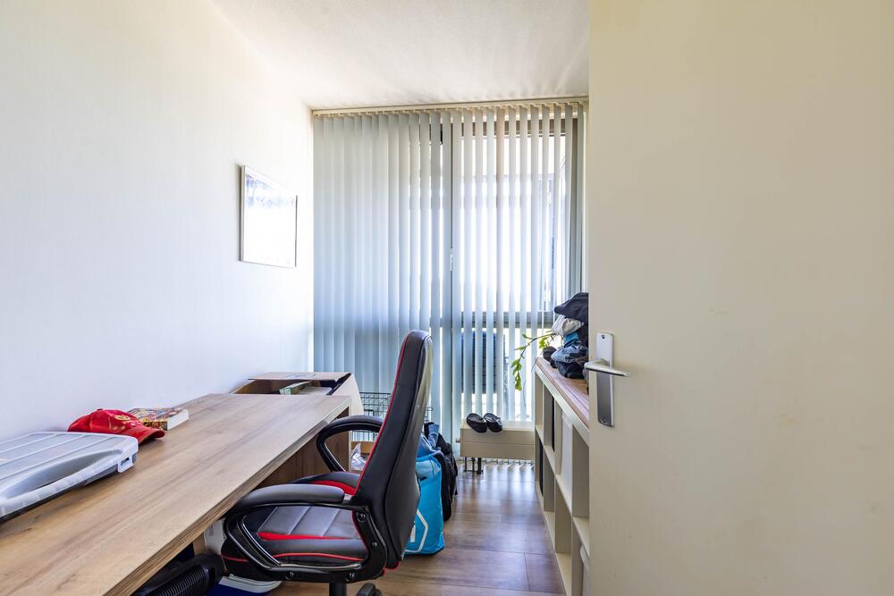 Twee slaapkamers (ca. 6 en 12 m2) eveneens met laminaatvloer en grote ramen.