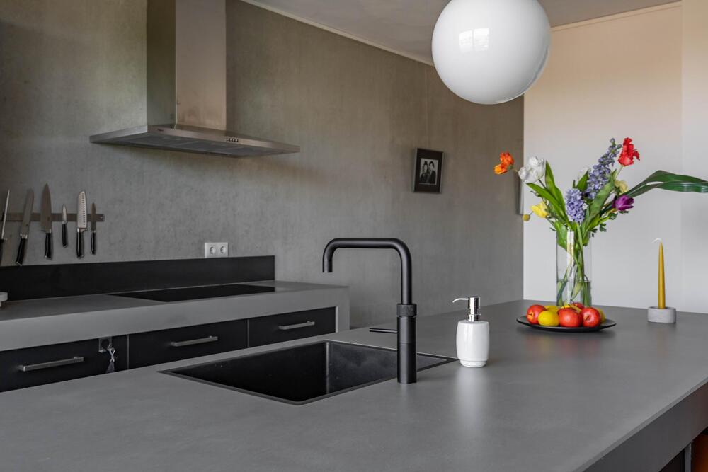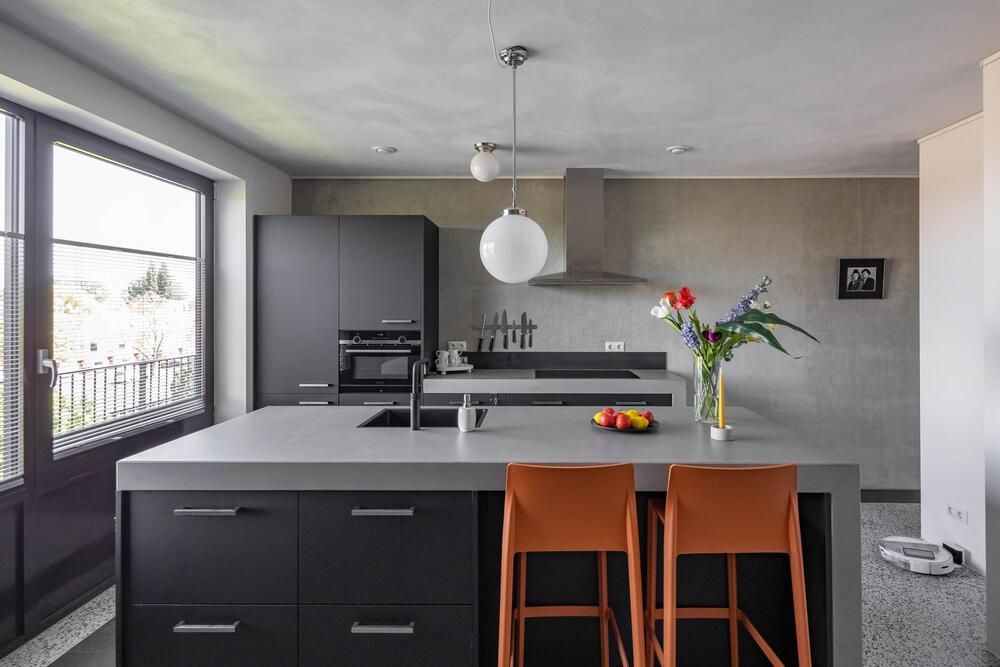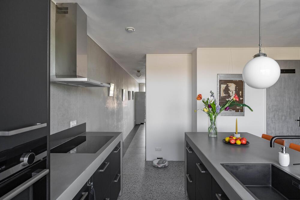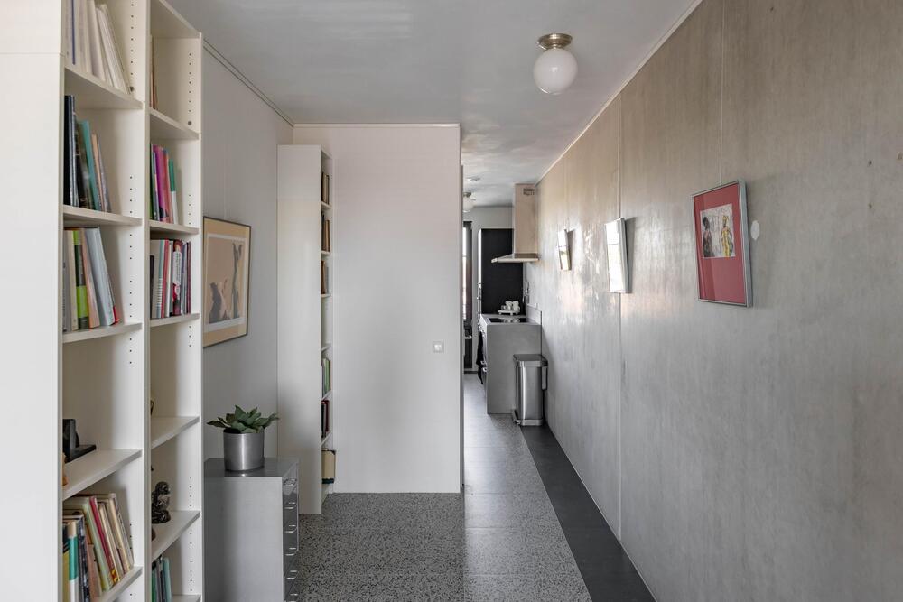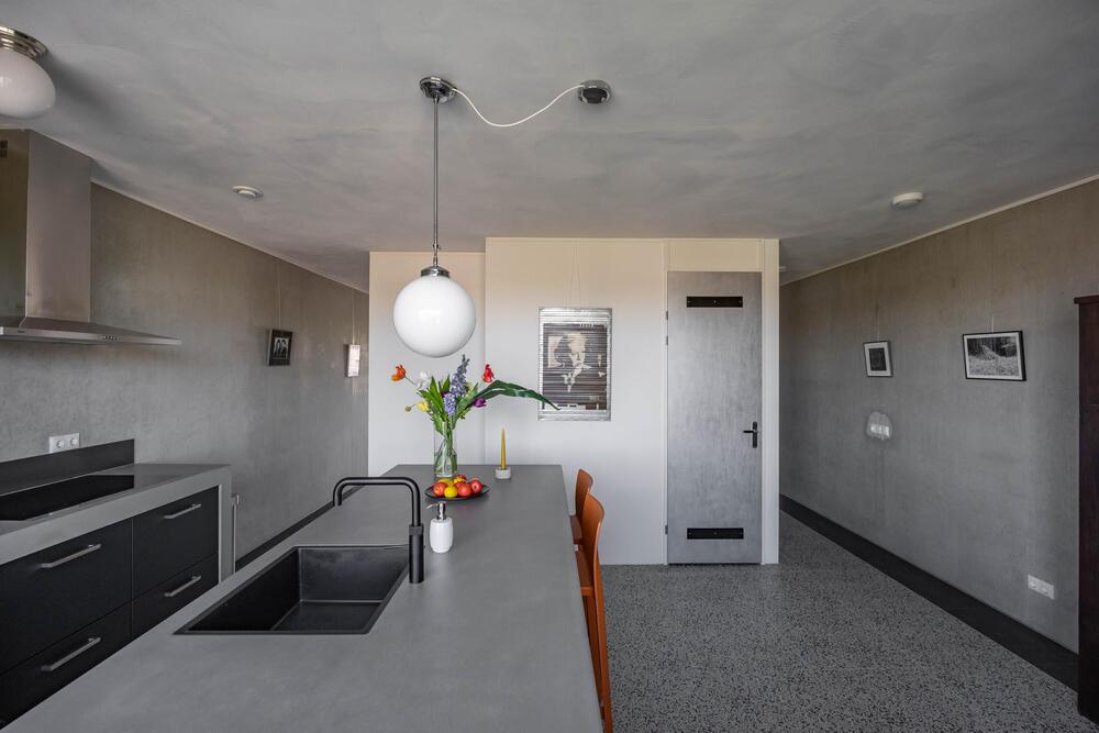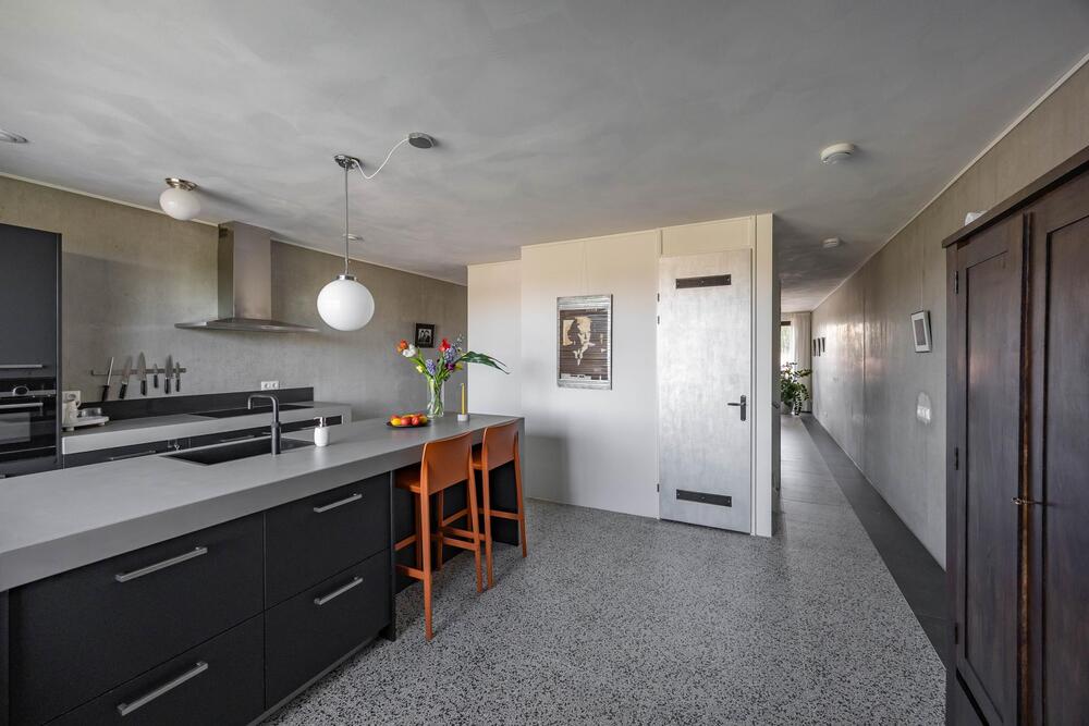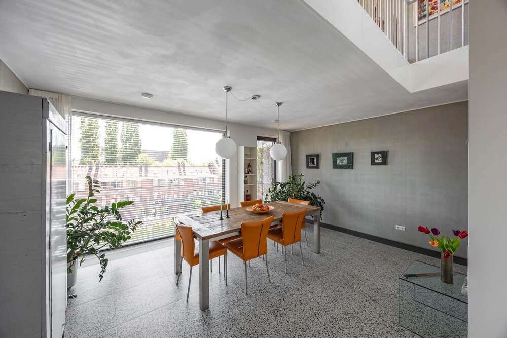 Entree in de ruime living (60 m2) v.v. keuken met een spoeleiland en diverse inbouwapparatuur. Via de hal aan de rechterkant van de woning loop je langs de bijkeuken (4 m2) met de technische installaties en de witgoedaansluitingen, het toilet en kom je uiteindelijk in de ruime en lichte eetkamer voorzien van frans balkon en vide. Aan de linkerkant van de woning is een studeer/kantoorgedeelte gerealiseerd.