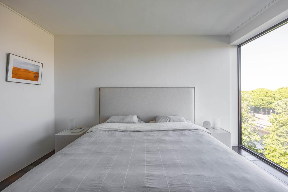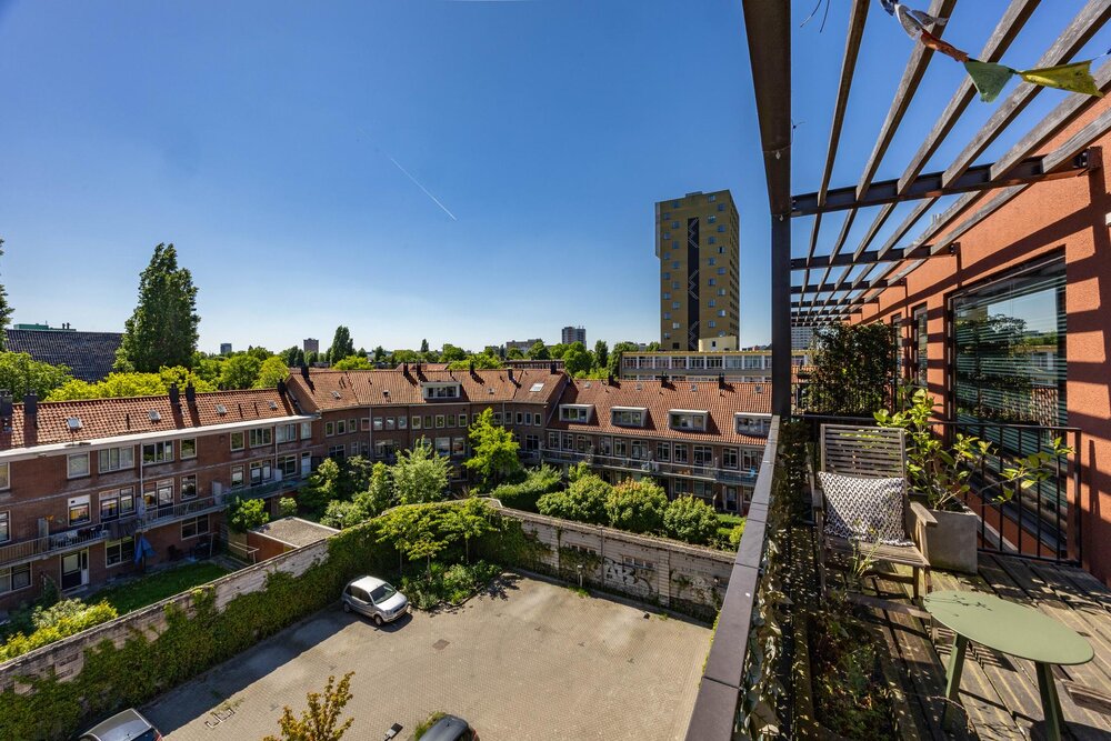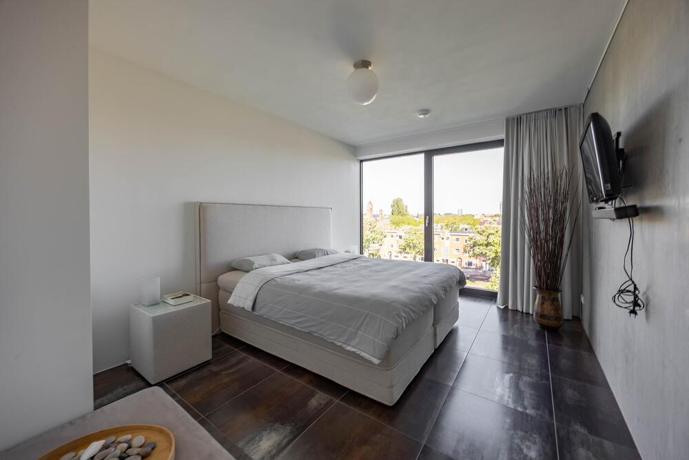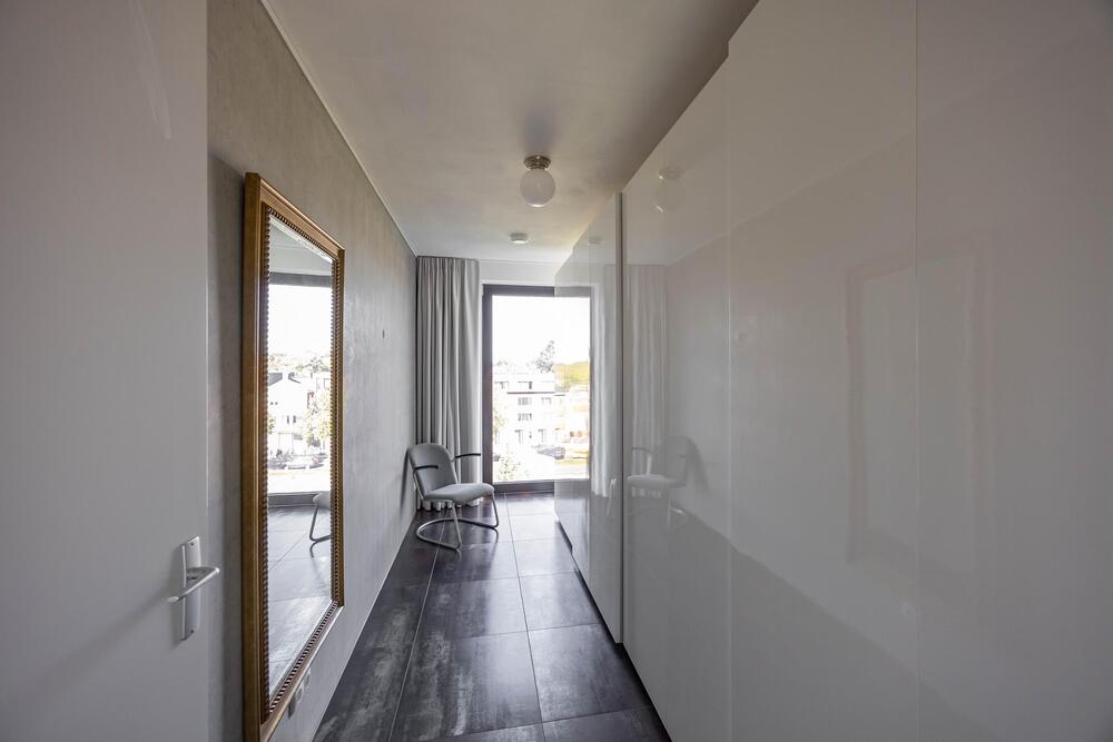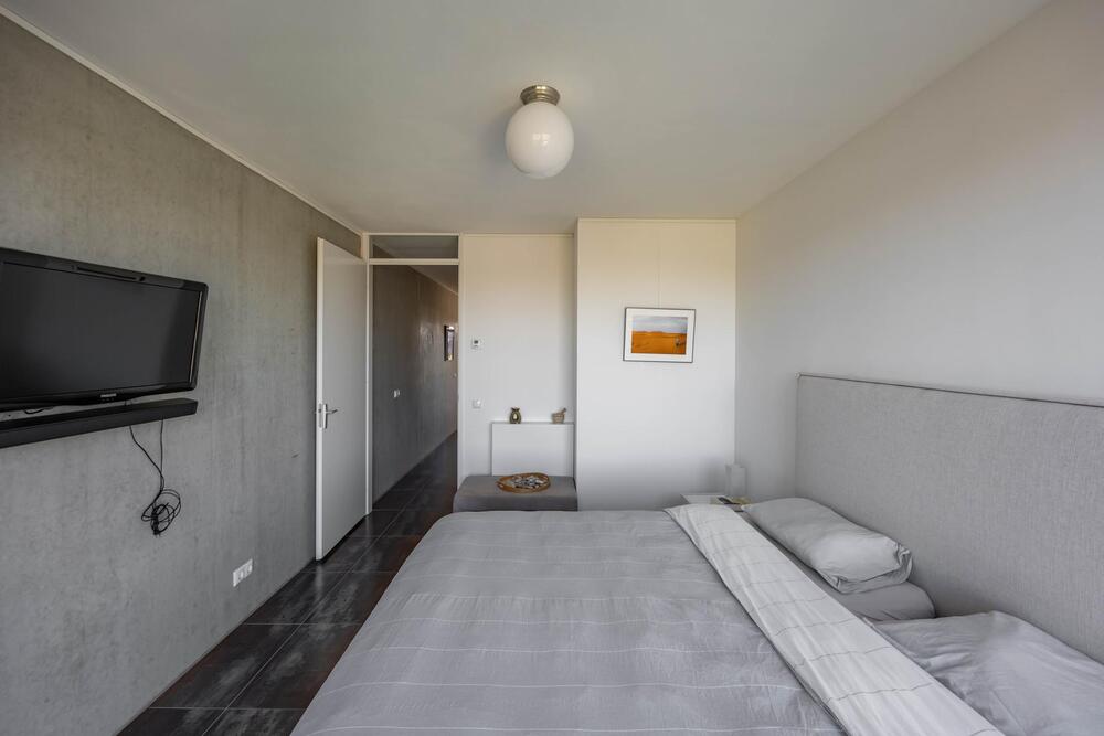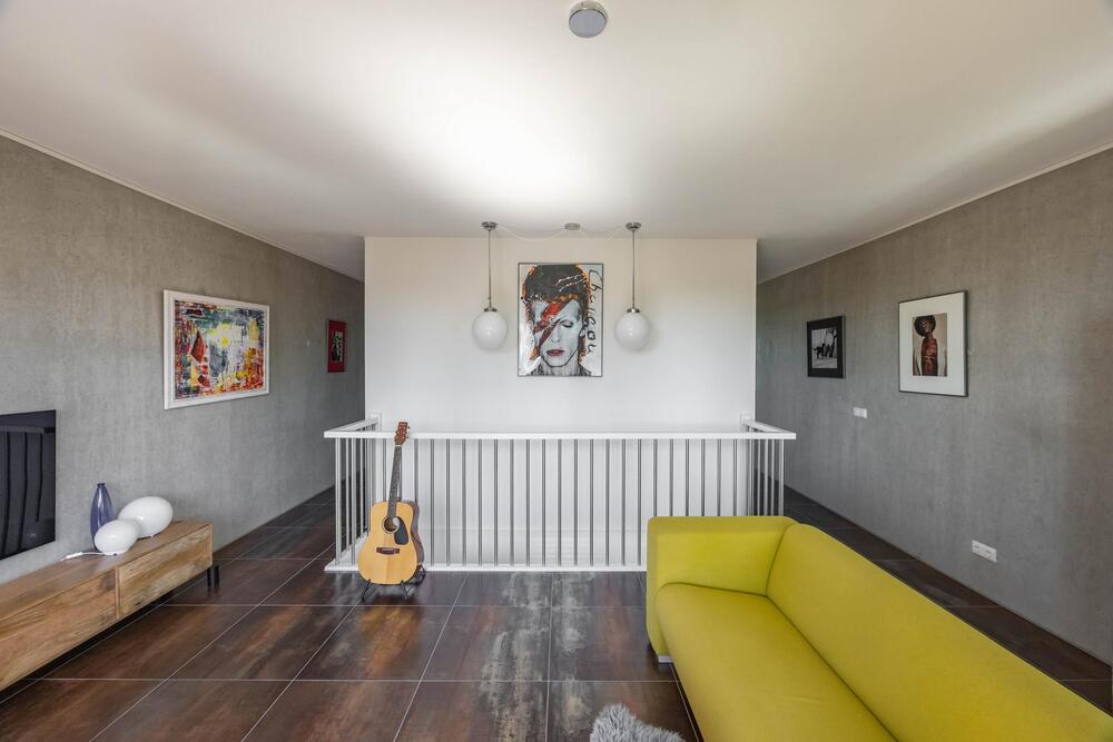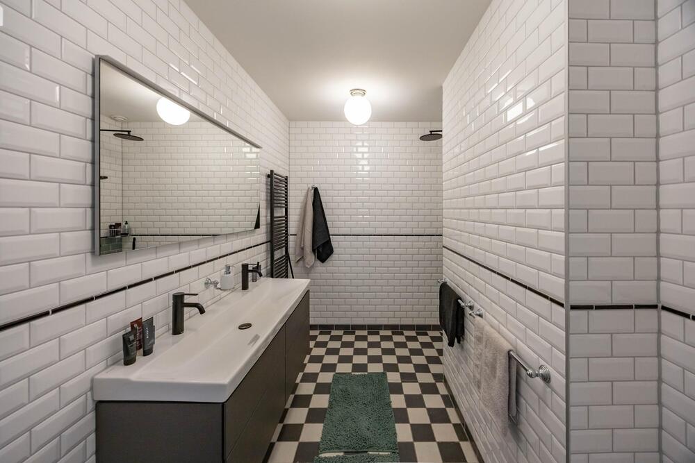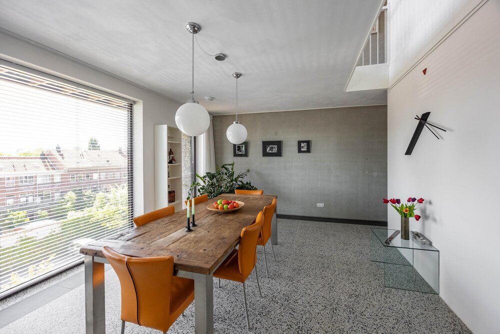Je komt boven op de ruime overloop. Aan de voorkant van de woning bevinden zich twee slaapkamers (15 en 9 m2). De badkamer (6 m2) bevindt zich in het midden van de woning en is voorzien van dubbele wastafel, ruime inloopdouche en tweede toilet. Aan de achterkant van de woning is een tweede woonkamer (24 m2) met toegang tot het zeer ruime terras/balkon (13 m2) op het zuidoosten.