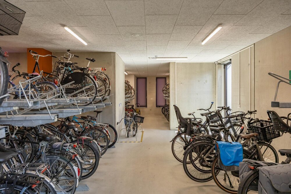 Entree in gezamenlijk hal met intercom en lift. Vanuit hier is ook toegang tot de gezamenlijke, afgesloten fietsenberging en het achtergelegen parkeerterrein met een eigen parkeerplaats.