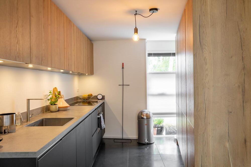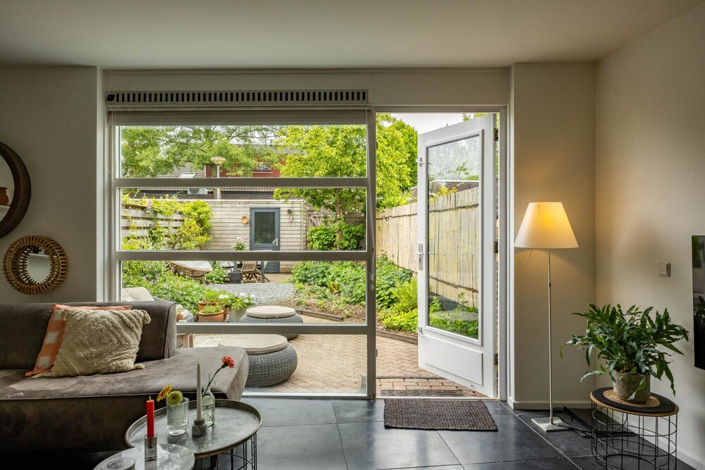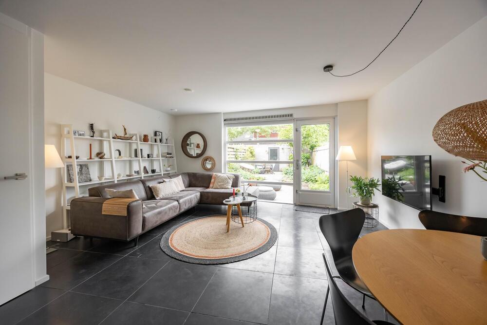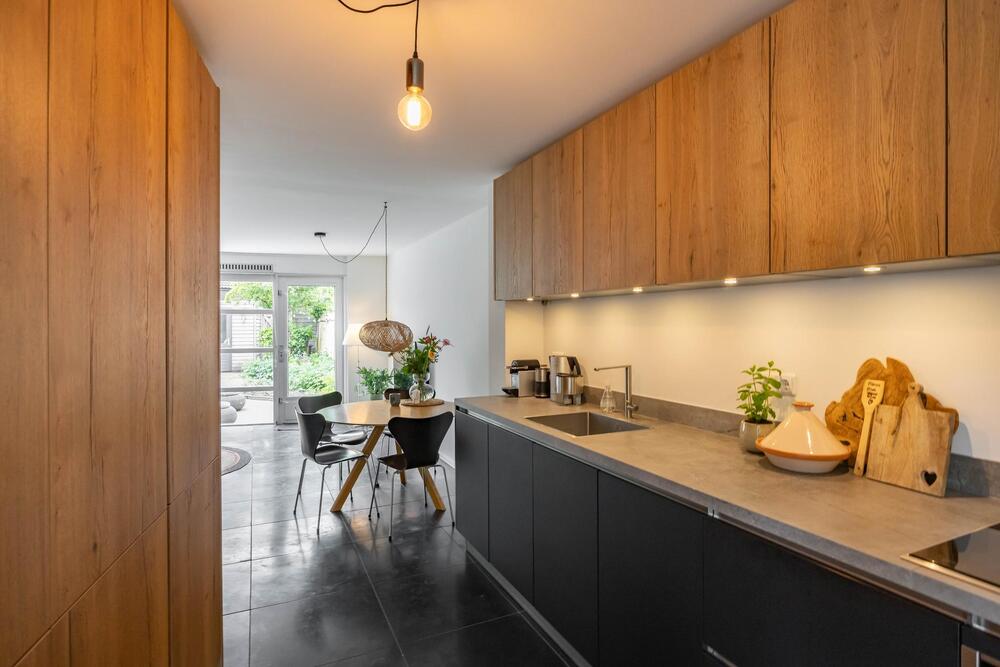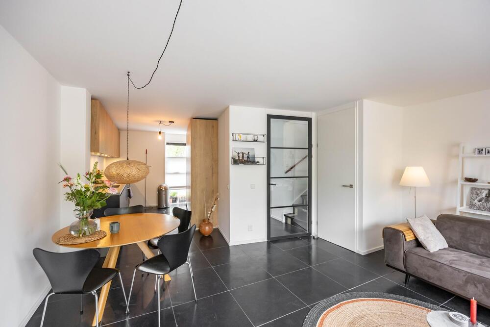 Begane grond: Hal/entree, toiletruimte, kastruimte met wasmachineaansluiting en opstelling cv, meterkast, tuingerichte woonkamer (34 m2) met een handige trapkast en een deur die toegang tot de tuin biedt. Vanuit de woonkamer kom je in de open keuken die uitzicht biedt op groen. De keuken is in 2018 vernieuwd en is voorzien van inbouwapparatuur, namelijk een koelkast, vriezer, combi-oven, vaatwasser en inductiekookplaat, dekton aanrechtblad en extra kastruimte. De begane grond is voorzien van vloerverwarming en een natuurstenen vloer.
