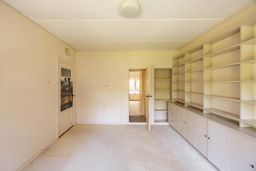 Begane grond: tochtportaal, hal, toilet, trapkast, royale woonkamer-en-suite (inclusief fraaie suitedeuren, kasten en een erker), eenvoudige dichte woonkeuken van 13 m2 en een provisie- en stookkelder (13 m2).