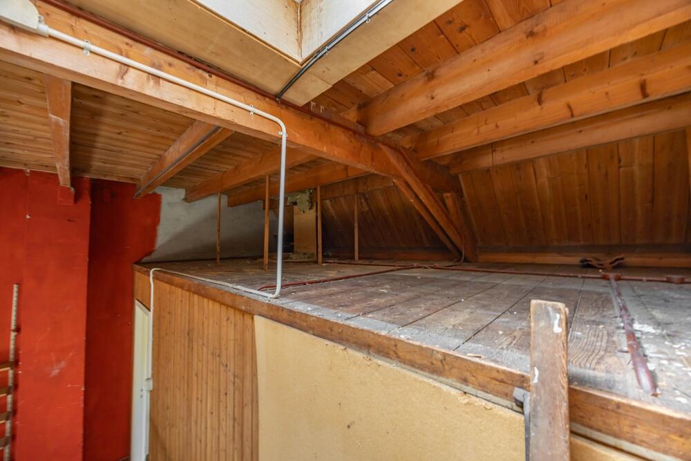 Tweede verdieping: grote zolderruimte (ca. 30 m2) met mogelijkheid tot extra (6e) kamer en nog eens 2 slaapkamers (13 en 10 m2).