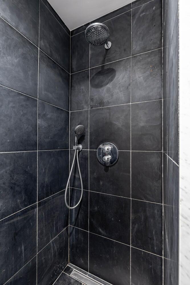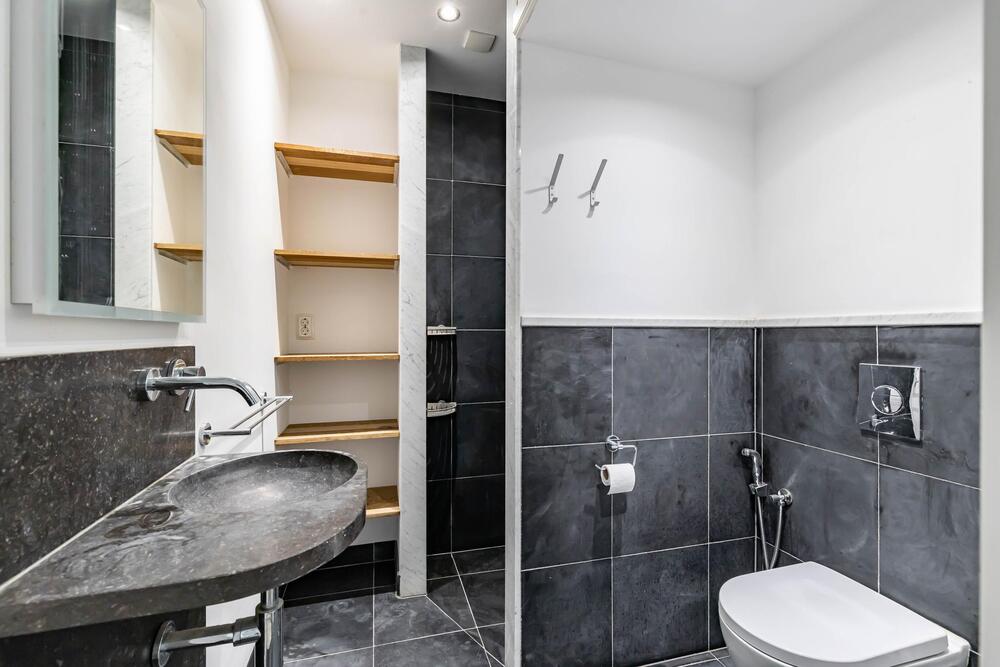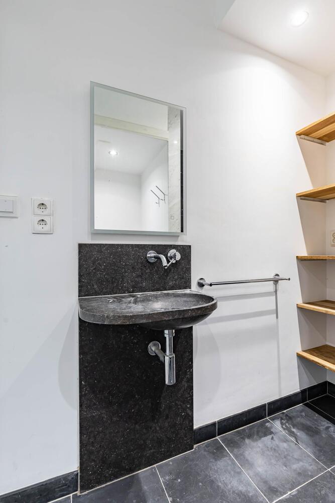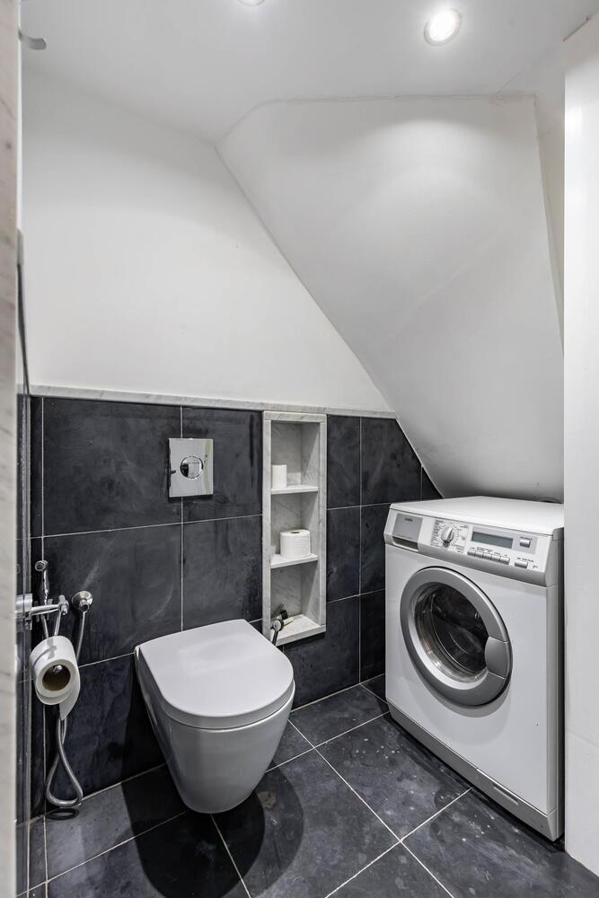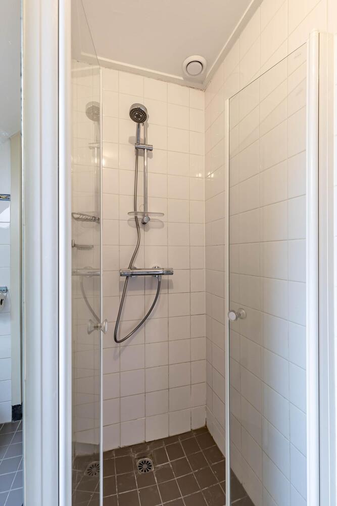 Ook bevindt zich een moderne badkamer op de begane grond, voorzien van inloopdouche, toilet, wastafel en aansluitingen voor het witgoed, ook met vloerverwarming!
