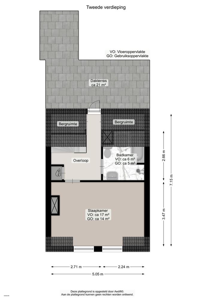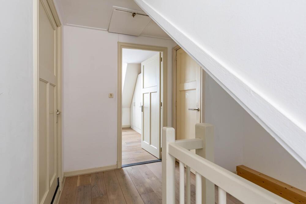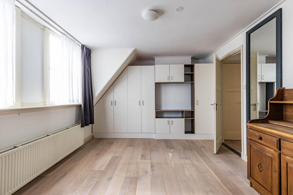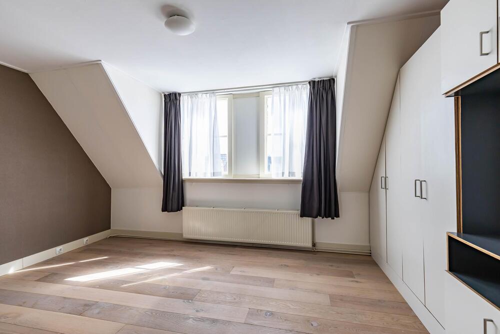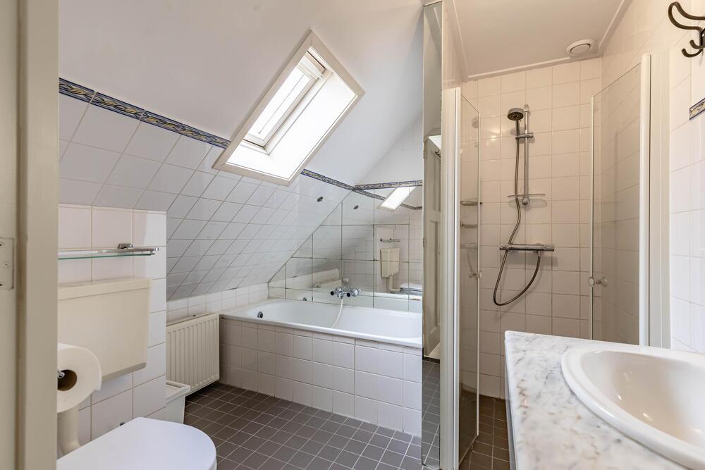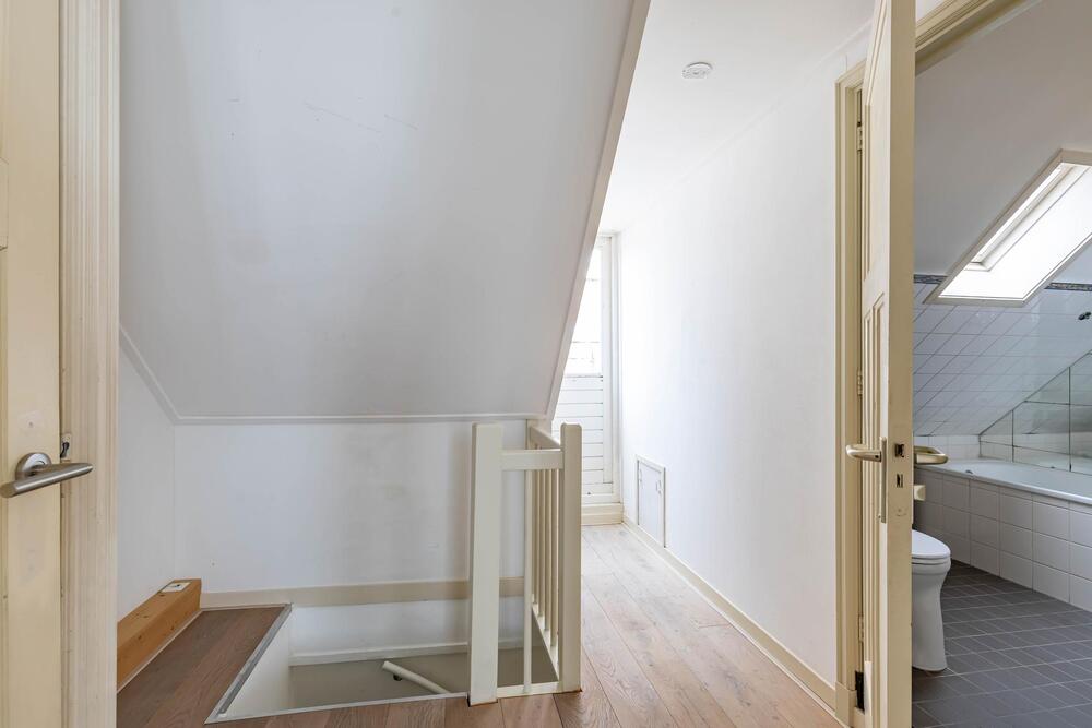 Op de tweede verdieping bevindt zich de tweede slaapkamer van ca. 14m² en een tweede badkamer met inloopdouche, toilet en ligbad. Vanaf de overloop loop je zo het dakterras van ca. 21m², met uitzicht op het Gedempte Kattendiep, op.