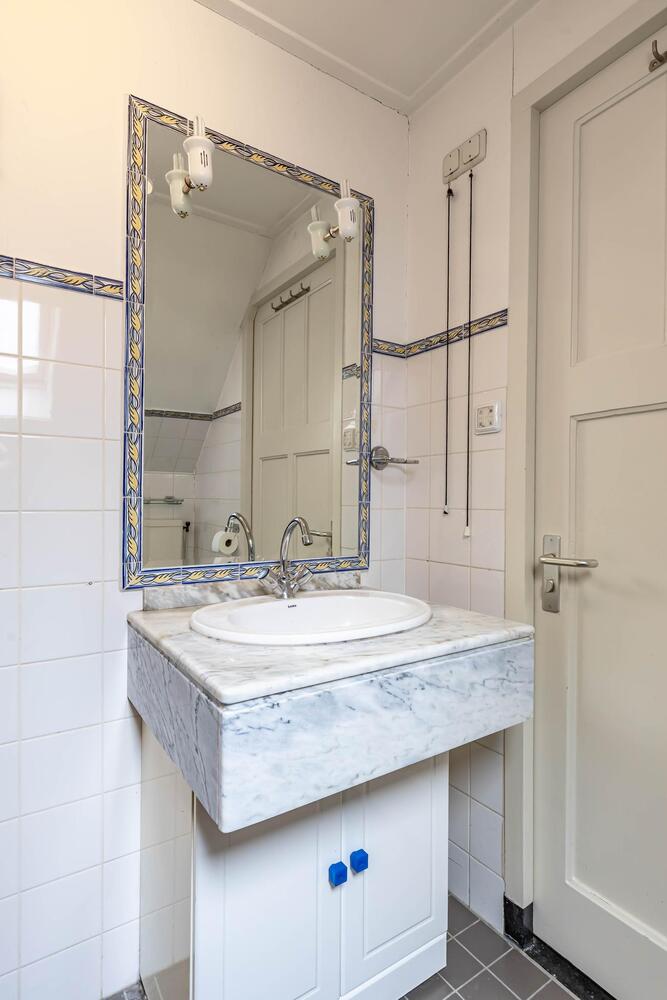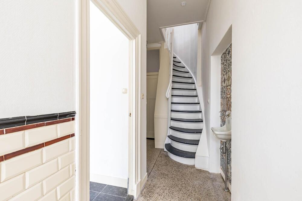 Bij binnenkomst valt direct de authentieke sfeer op: de prachtige granito vloer, de gezellige wandtegels en de hoge plafonds met robuuste houten draagbalken geven het pand een warme, monumentale uitstraling. In de loop der jaren is de woning zorgvuldig gemoderniseerd. Zo vind je er een eigentijdse keuken en een lichte woonkamer – zonder dat de authentieke details verloren zijn gegaan.