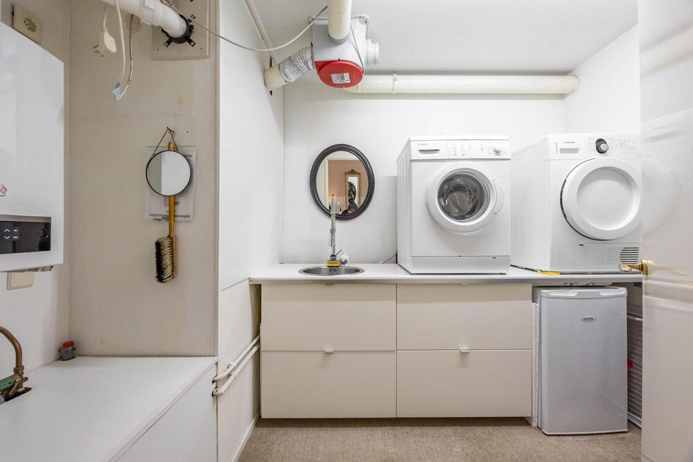 De halfopen keuken (vernieuwd in 2020) in U-vorm is 11 m2 en v.v. de benodigde inbouwapparatuur. Met leuk tafeltje aan het aanrechtblad. Vanuit de hal is toegang tot de grote slaapkamer van maar liefst 28 m2. Deze kamer biedt toegang tot de eerste badkamer uit 2018. Deze badkamer (8 m2) heeft een tweede toilet, dubbel wastafelmeubel en een inloopdouche. De tweede slaapkamer (11 m2) heeft ook zijn 'eigen' badkamer (3 m2) met douche en wastafel. Hoe handig! Verder nog een praktische bijkeuken van 6 m2 en een voorraadkast van 3 m2.